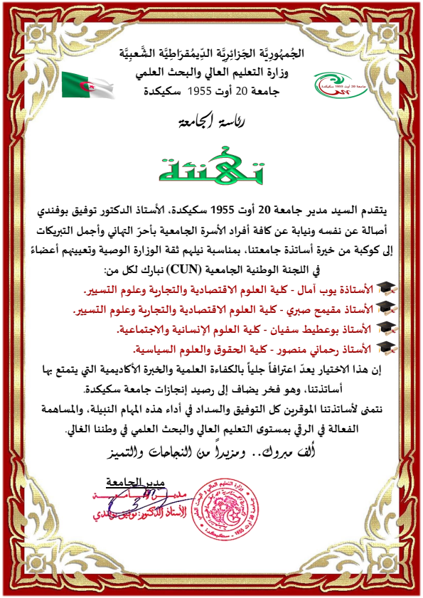 فضاء يضم كل المنشورات و المجلات العلمية لجامعة سكيكدة