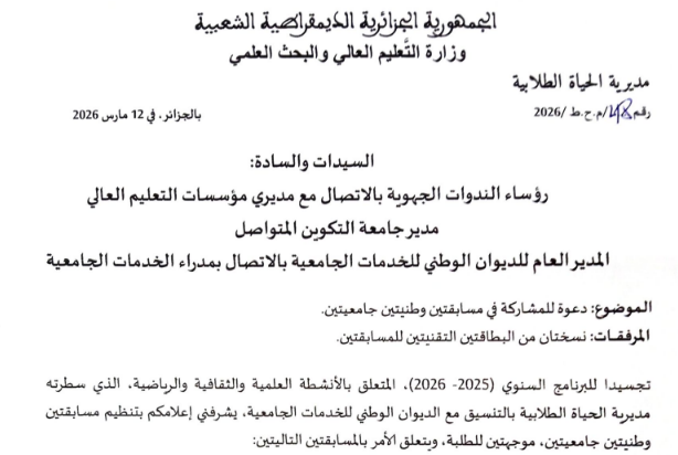 فضاء يضم التظاهرات العلمية و الثقافية الجامعية خلال السنة الاكاديمية 2025-2026