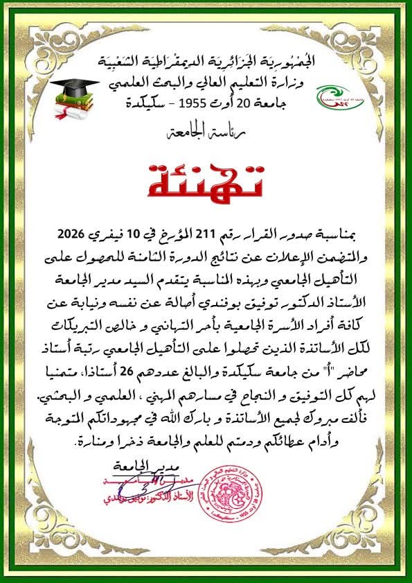 فضاء يضم كل المنشورات و المجلات العلمية لجامعة سكيكدة