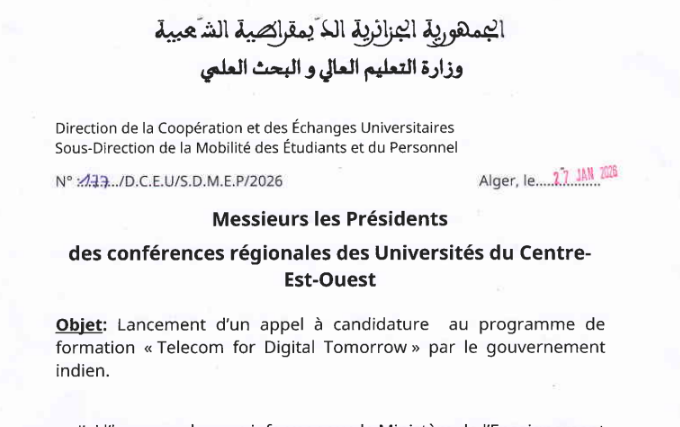دعوة للترشح للبرنامج التدريبي المقدم من قِبل الحكومة الهندية لموظفي مؤسسات التعليم العالي  "Telecom for Digital Tomorrow" .