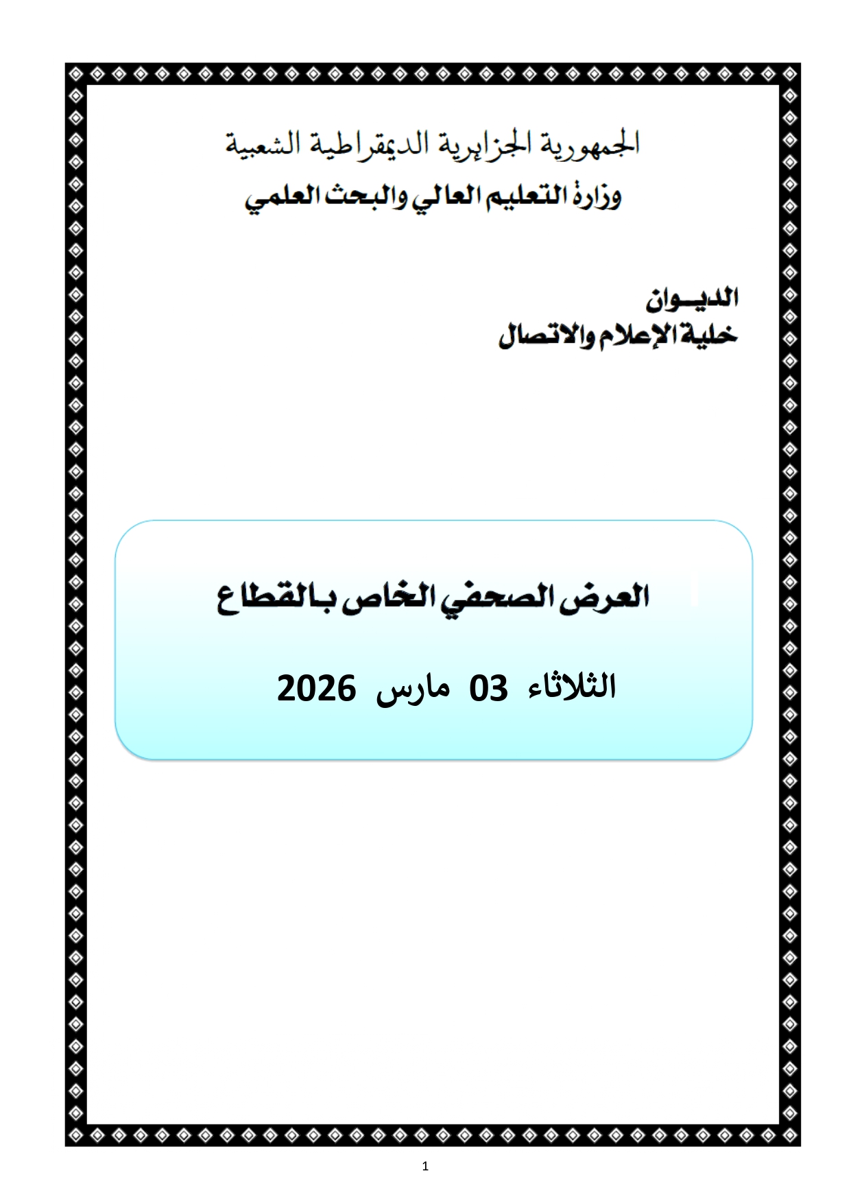 فضاء يضم التظاهرات العلمية و الثقافية الجامعية خلال السنة الاكاديمية 2025-2026