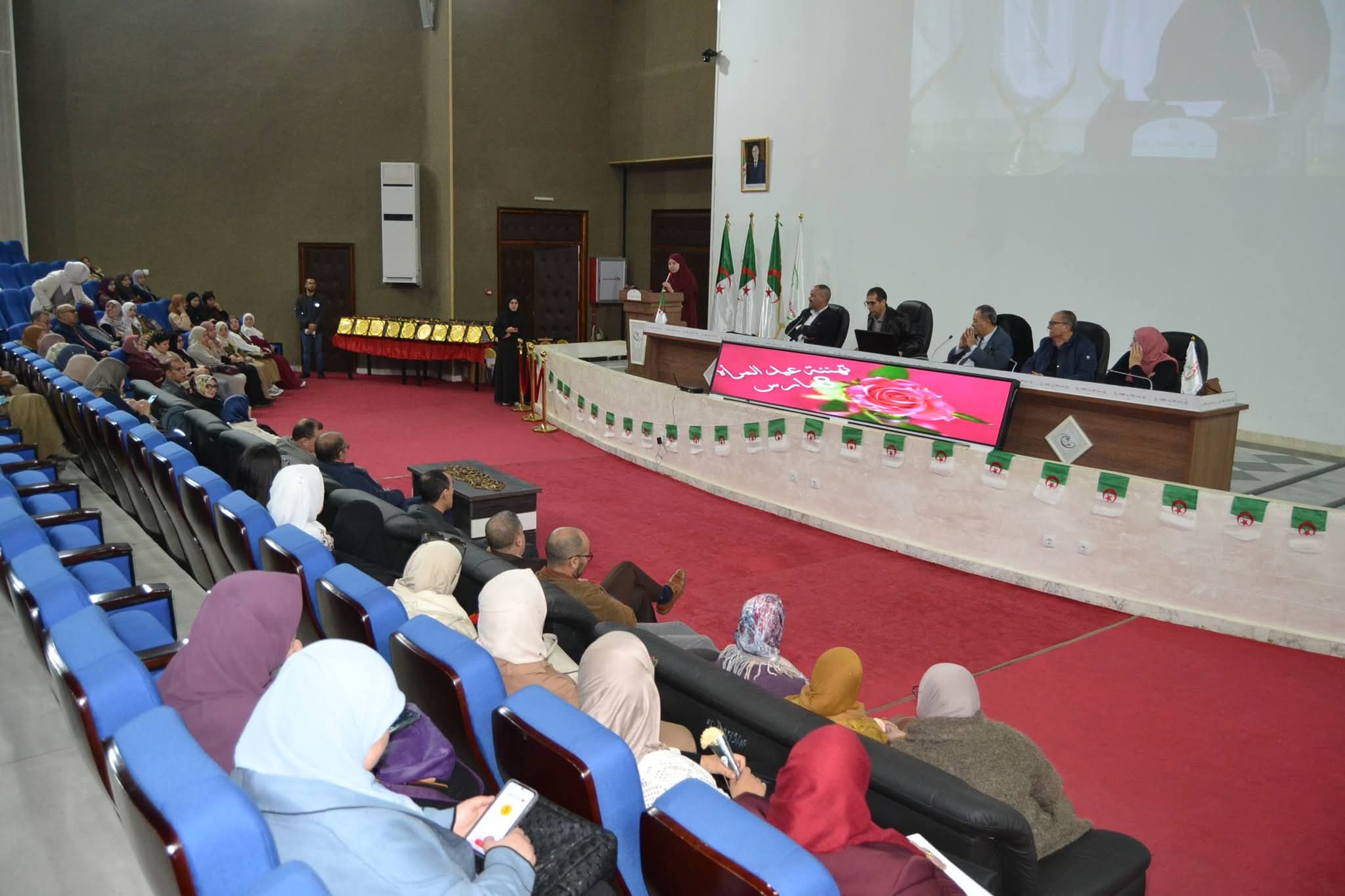 في أجواء مفعمة بالتقدير والاعتزاز، وبمناسبة اليوم العالمي للمرأة المصادف لـ 08 مارس من كل سنة، احتضنت قاعة المحاضرات الكبرى "عبد الحميد مهري" صبيحة اليوم الأحد 08 مارس 2026، احتفالية بهيجة نظمتها لجنة الخدمات الاجتماعية لجامعة سكيكدة ، تكريماً للعنصر النسوي بالأسرة الجامعية من أستاذات، موظفات وعاملات