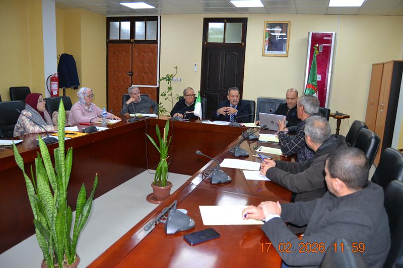 - أشرف السيد مدير جامعة 20 أوت 1955 سكيكدة، البروفيسور بوفندي توفيق، بصفته رئيساً للجنة السكن للمدينة الجامعية سكيكدة، مساء اليوم الثلاثاء 17 فيفري 2026 بقاعة الاجتماعات لرئاسة الجامعة، على عقد اجتماع تنسيقي موسع ضمّ كل من السيدات و السادة : مدير المدرسة العليا لأساتذة التعليم التكنولوجي عزابة ، نائب المدير المكلف بالتنمية والاستشراف والتوجيه ، مسؤولي مكاتب السكن بالجامعة والمدرسة العليا لأساتذة التعليم التكنولوجي عزابة ، مديرية الخدمات الجامعية سكيكدة و جامعة التكوين المتواصل (فرع سكيكدة) ، و ممثلي الشركاء الاجتماعيين عن كل من نقابات : SNAPAP ,UGTA , SNAPES