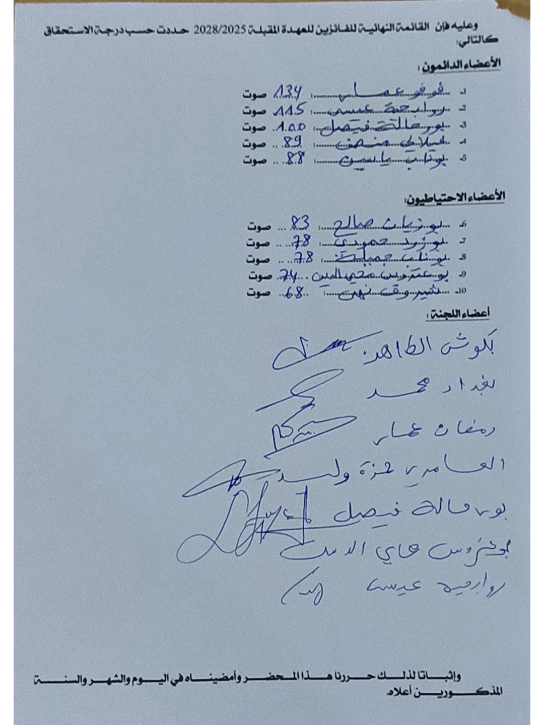 النتائج الأولية لإنتخابات تجديد عضوية اللجان الإدارية المتساوية الأعضاء للعهدة 2025-2028