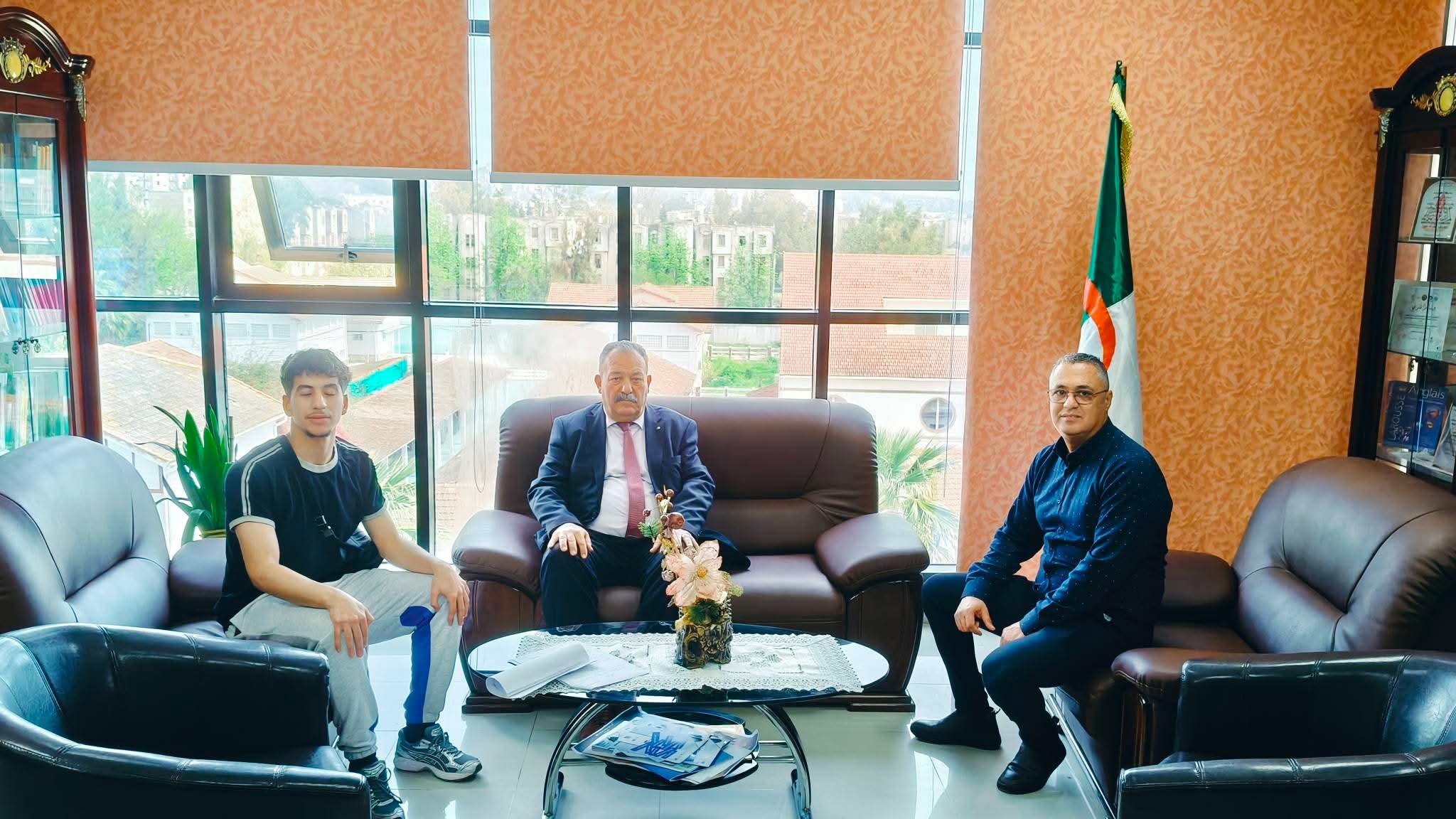 استقبال مدير الجامعة للطالب الرياضي المتألق بلحسن عبد الوهاب عقب تحقيقه لإنجازات رياضية باهرة رفعت الراية الوطنية عالياً في المحافل الدولية 22 أفريل 2026