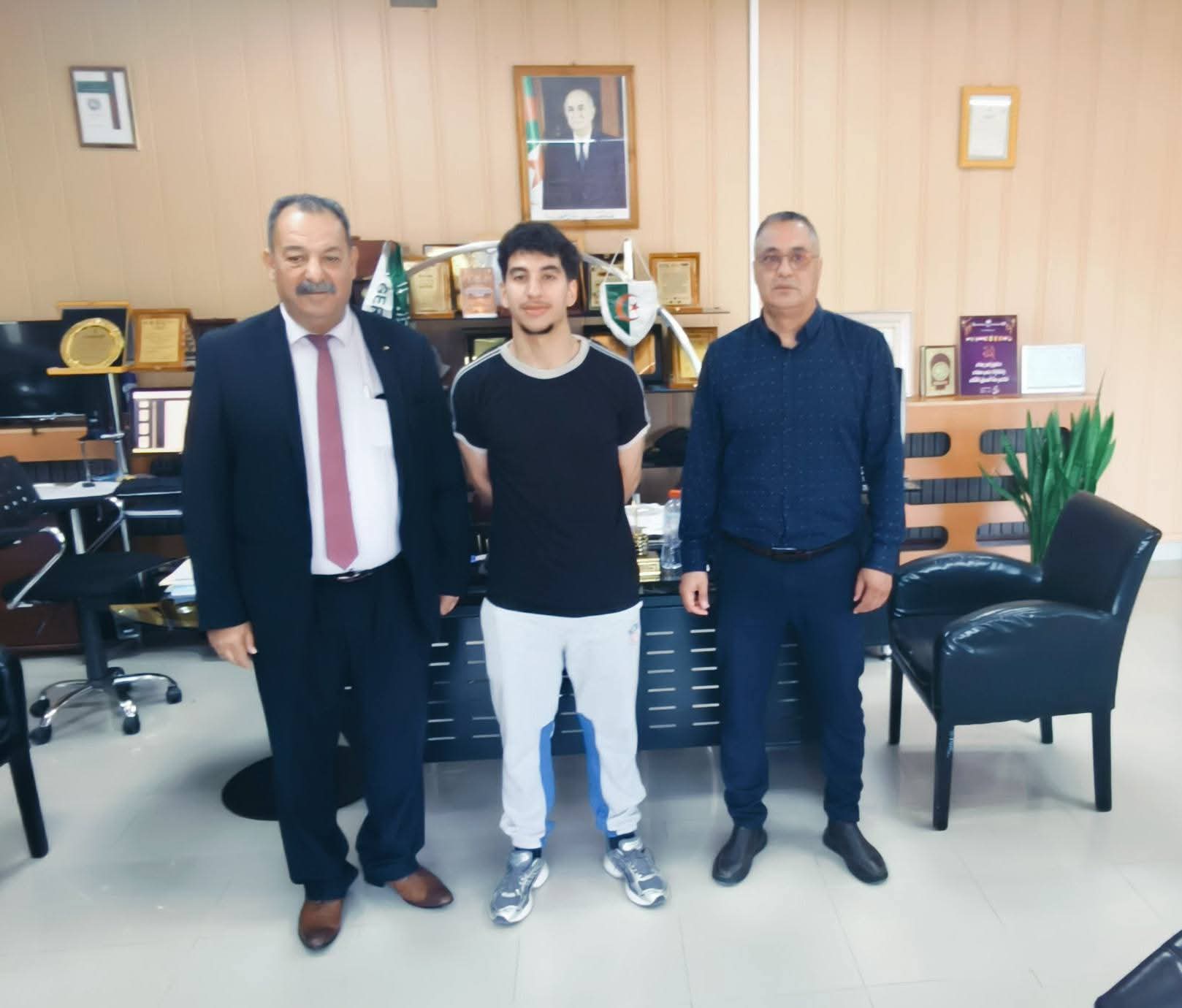 في إطار سياسة دعم الكفاءات الطلابية والمواهب الرياضية، استقبل السيد مدير جامعة سكيكدة، البروفيسور توفيق بوفندي ، صباح يوم الأربعاء 22 أفريل 2026 بمقر رئاسة الجامعة، رفقة المدير الفرعي للأنشطة العلمية و الثقافة. و الرياضية ، الطالب الرياضي المتألق بلحسن عبد الوهاب، الذي يدرس بالسنة أولى ماستر تخصص هندسة بتروكيميائية (Génie Pétrochimique)، وذلك عقب تحقيقه لإنجازات رياضية باهرة رفعت الراية الوطنية عالياً في المحافل الدولية.