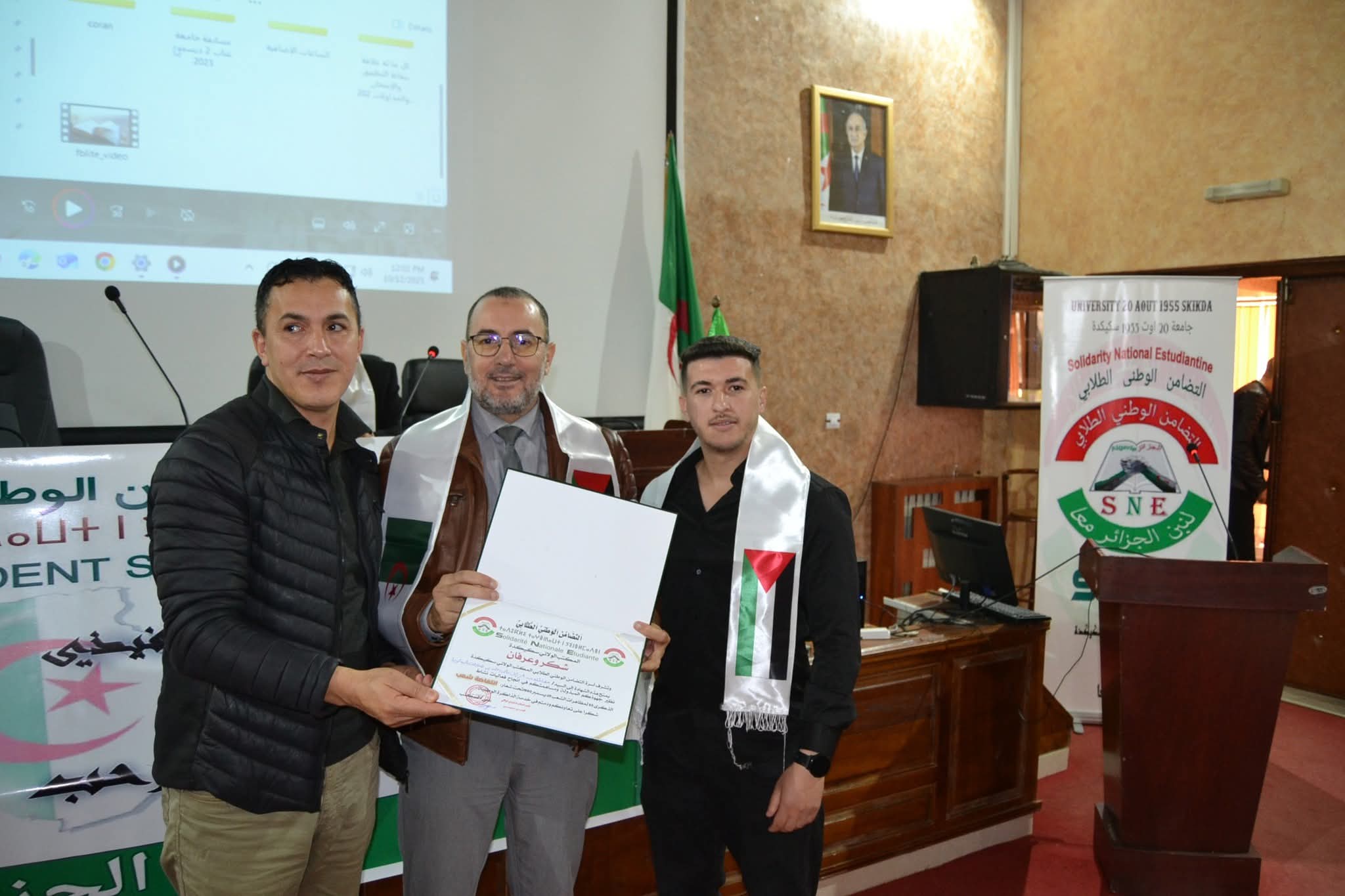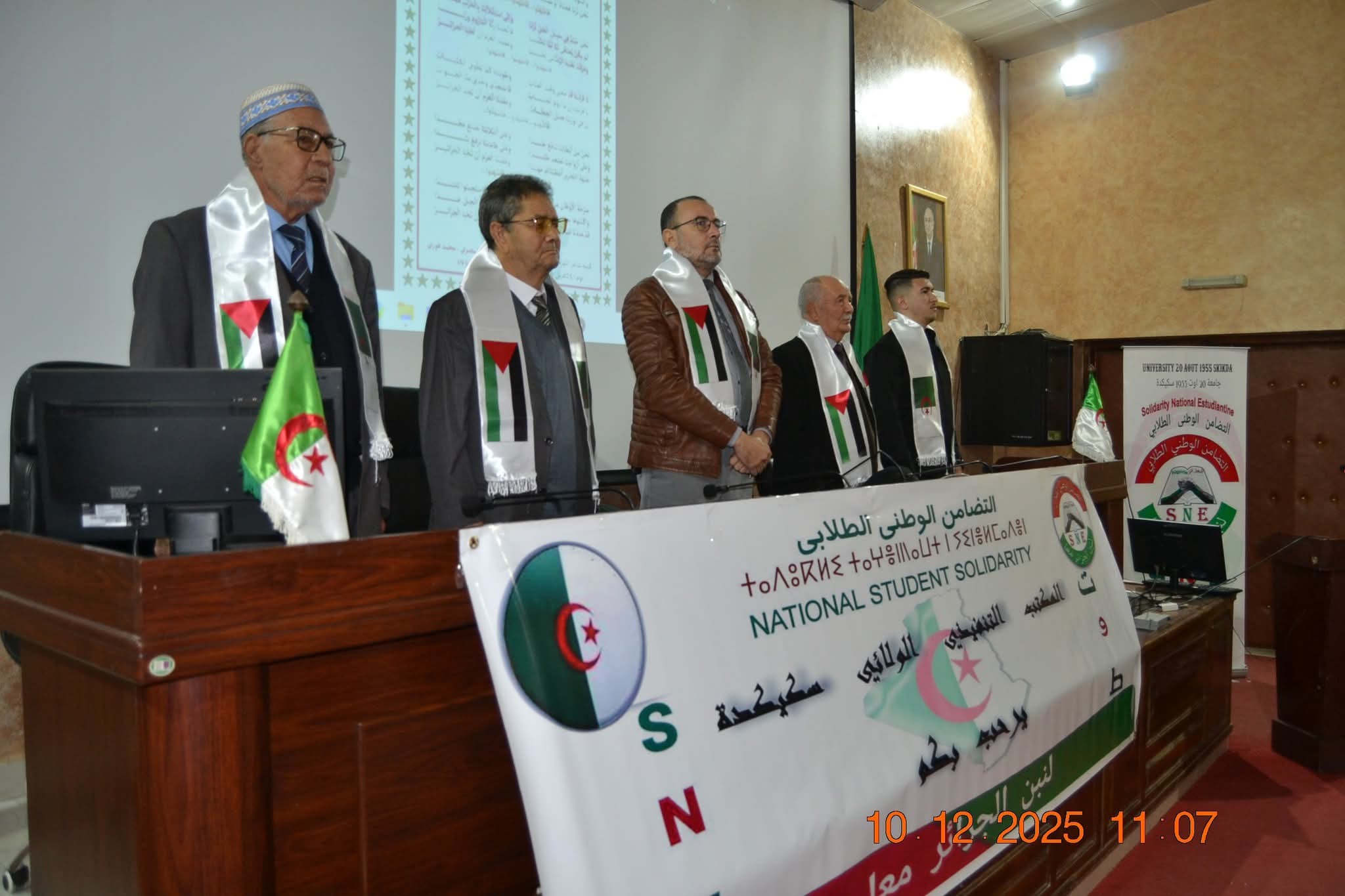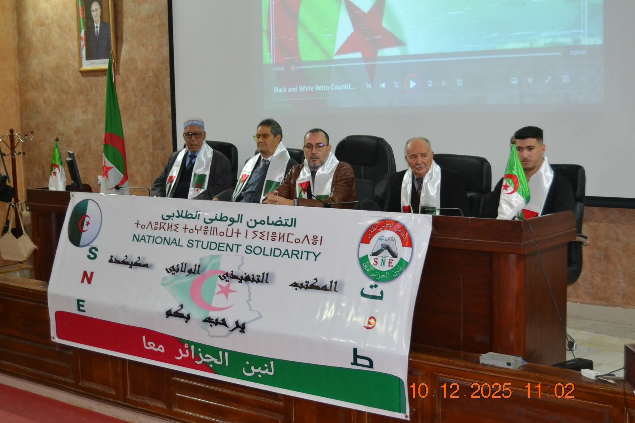 في إطار الإحتفالات المخلدة للذكرى الخامسة والستون لمظاهرات الشعب 11 ديسمبر 1960 المجيدة ضد الإستعمار الفرنسي الغاشم ، نظم صبيحة يوم الأربعاء 10 ديسمبر 2025 بقاعة المحاضرات مجمع مسعود بوقادوم التضامن الوطني الطلابي المكتب الولائي سكيكدة SNE_Skikda بالتنسيق مع نادي الذاكرة والتراث ذكرى تاريخية بمناسبة مظاهرات 11 ديسمبر 1960 تحت شعار إنتفاضة شعب ، حيث أشرف نائب المدير المكلف بالبيداغوجيا ا.د مطاطلة عبد الرزاق نيابة عن السيد مدير الجامعة البرفيسور بوفندي توفيق على إفتتاح فعاليات هذا النشاط التاريخي ، رفقة رئيس المكتب الولائي SNE Skikda و الأسرة الثورية