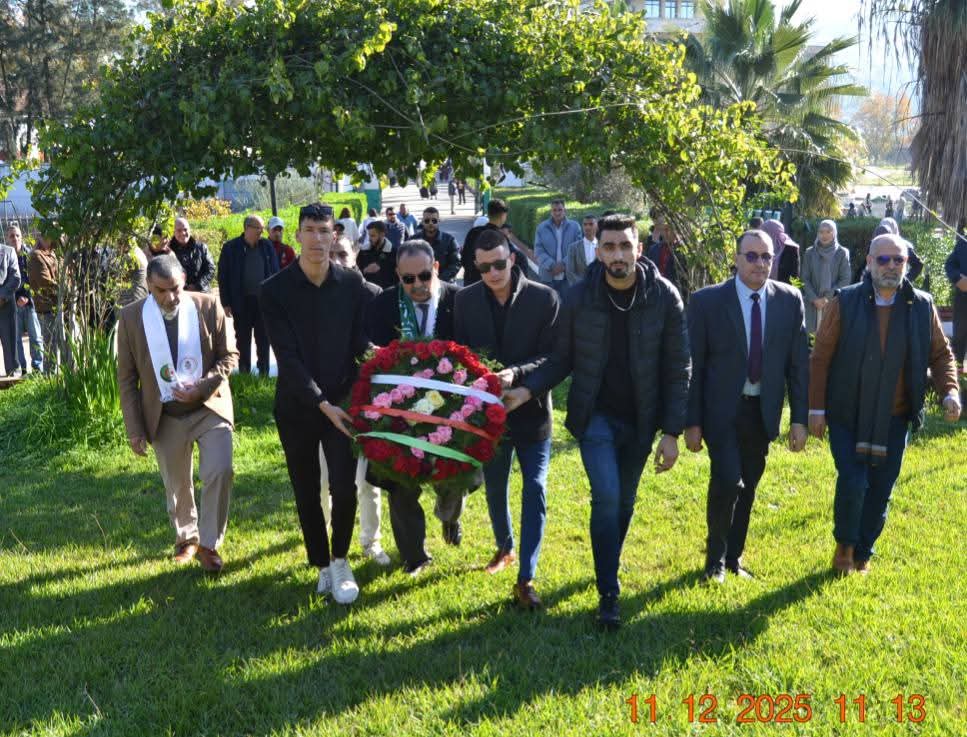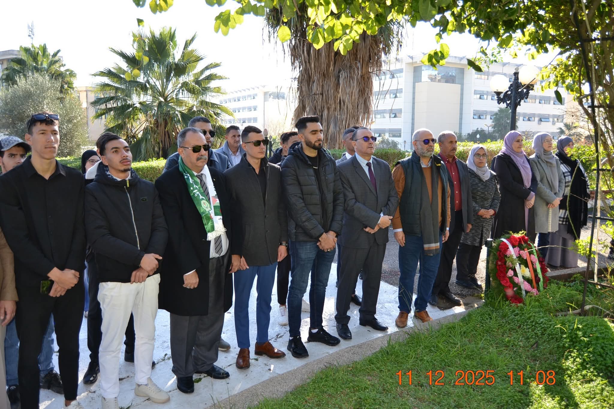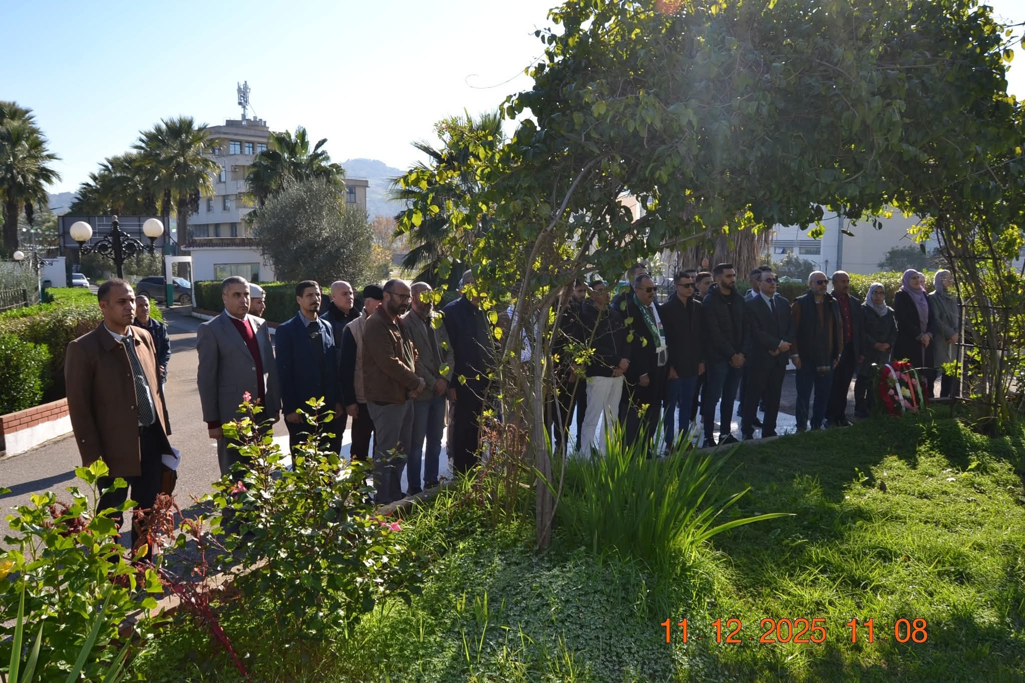 في إطار الإحتفالات المخلدة للذكرى (65) لمظاهرات الشعب المصادف للحادي عشر من شهر ديسمبر من كل سنة ، أشرف صبيحة يوم الخميس11 ديسمبر 2025 على الساعة 11:00 صباحا ، السيد مدير جامعة 20 أوت 1955 سكيكدة البروفيسورتوفيق بوفندي على مراسيم إحياء هذه الذكــرى رفقة كل من الطاقم الإداري للجامعة ، ومختلف الشركاء الإجتماعيين بالجامعة من النقابات و التنظيمات طلابية و النوادي العلمية المعتمدة بالجامعة ، و ثلة من الأساتذة و الموظفين والطلبة ، من خلال الوقوف تحية وإجلال للنشيد الوطني الجزائري و قراءة الفاتحة ووضع إكليل من الورود بالنصب التذكاري للجامعة ترحما على أرواح شهدائنا الأبرار.
