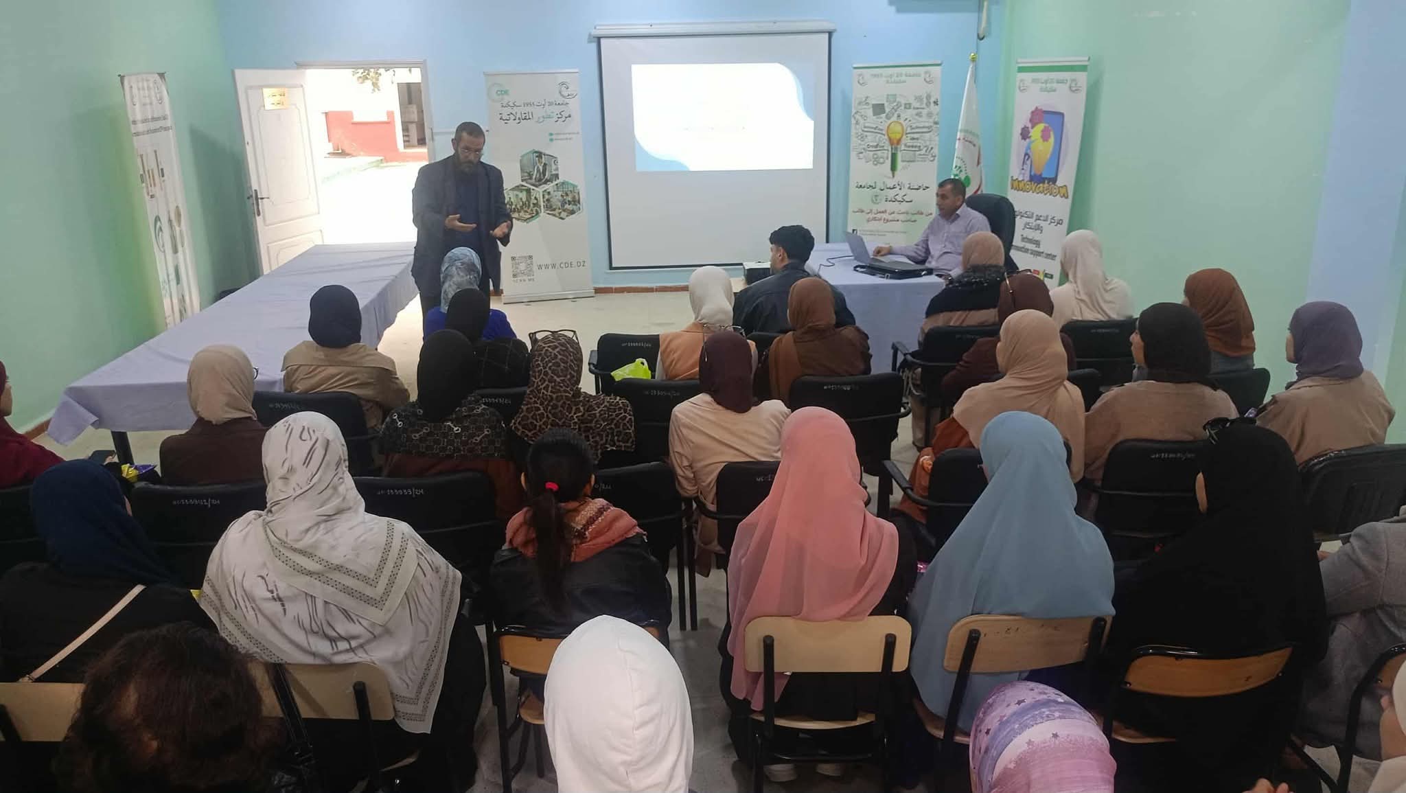 عرض حول إجراءات تسجيل براءة اختراع من تقديم الأستاذ عبد العزيز سعدون، الذي قدم للطلبة الخطوات الأساسية لحماية أفكارهم ومبتكراتهم قانونيا.جامعة سكيكدة… نحو تمكين طلبتها من أدوات بناء مشاريع مبتكرة ومستدامة.