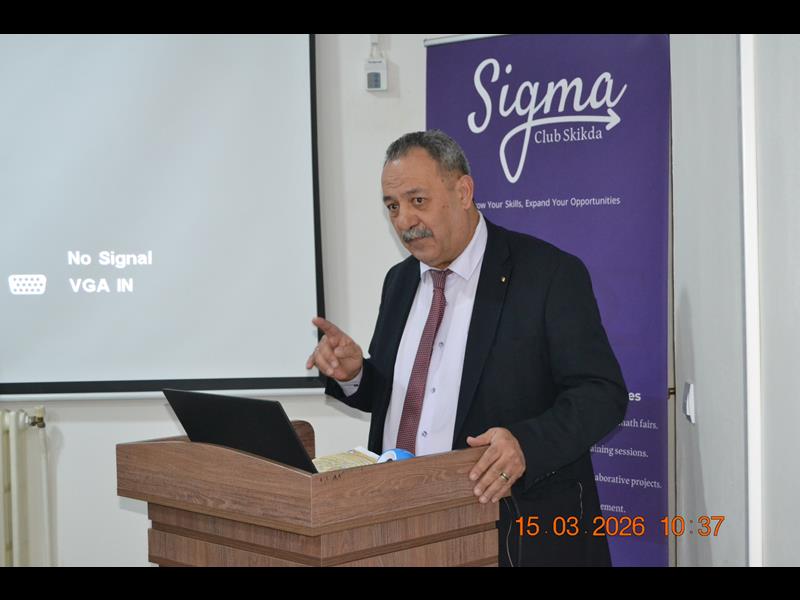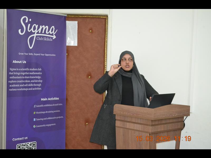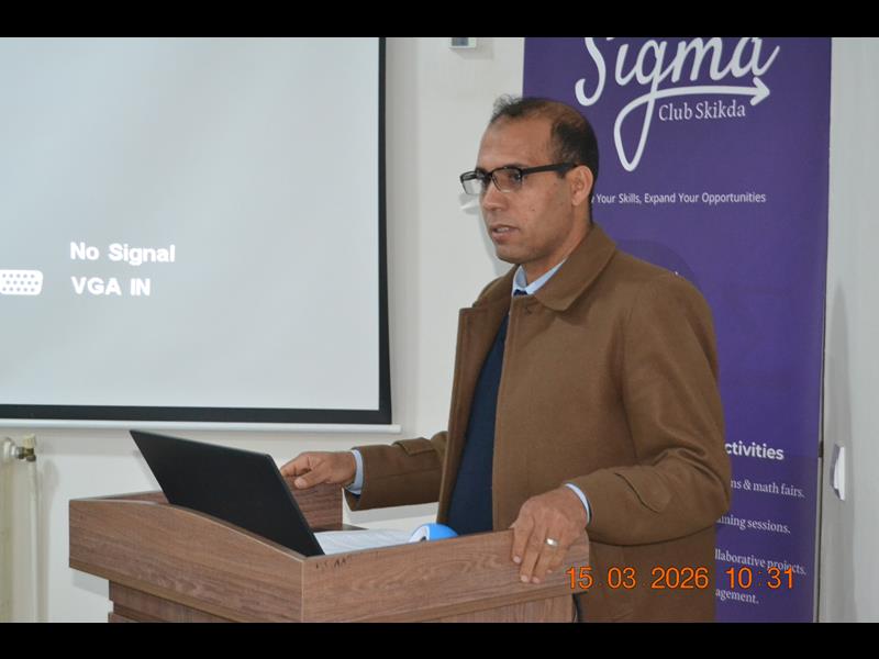 في أجواء مفعمة بالشغف العلمي والابتكار، وبمناسبة اليوم العالمي للرياضيات المصادف لـ 14 مارس من كل سنة ، احتضنت قاعة المناقشات (B) بكلية العلوم بجامعة 20 أوت 1955 سكيكدة، صبيحة اليوم الأحد 15 مارس 2026، افتتاح فعاليات الندوة العلمية الموسومة بـ "Pi day'26 – Mathematical Innovations & Practical Skill" ، وقد استهلت التظاهرة بكلمة ترحيبية وتوجيهية قيمة ألقاها السيد مدير الجامعة، البروفيسور بوفندي توفيق،والذي رحب من خلالها بكافة الأساتذة والطلبة والضيوف، مؤكدا على الأهمية المحورية لعلوم الرياضيات في صياغة المستقبل التكنولوجي، ومشيدا بالدور الريادي الذي تلعبه كلية العلوم وقسم الرياضيات في تعزيز ثقافة الابتكار والبحث التطبيقي.