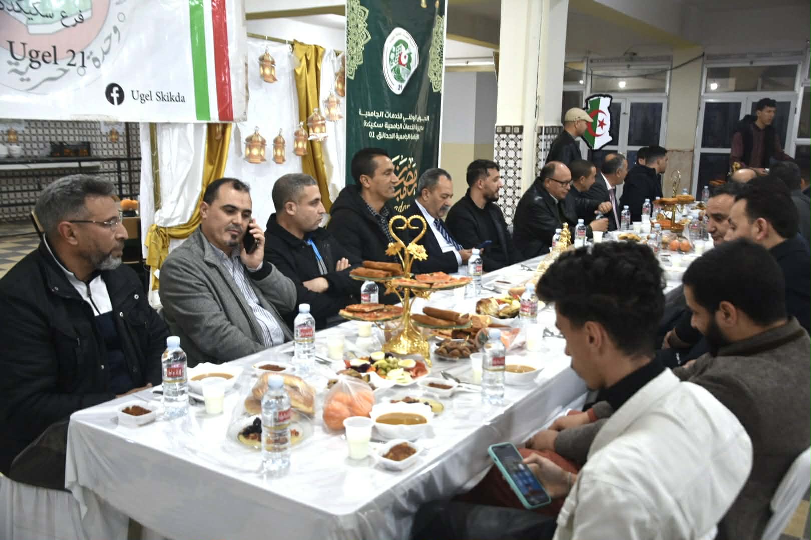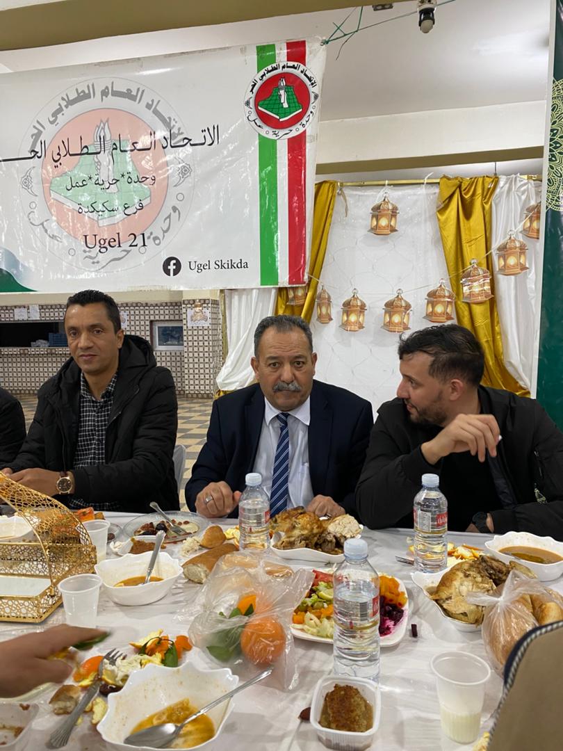 في مشهد يجسد أسمى قيم التآخي والتعاون، احتضنت الإقامة الجامعية "الحدائق 1" يوم الثلاثاء 10 مارس 2026، مأدبة إفطار جماعي بهيجة نظمها المكتب الولائي سكيكدة للاتحاد العام الطلابي الحر (UGEL Skikda) بالتنسيق مع إدارة الإقامة الجامعية الحدائق 1 ، على شرف الأسرة الجامعية والطلبة الدوليين ، وقد شهد الحدث حضوراً نوعياً تقدمه السيد مدير الجامعة، البروفيسور بوفندي توفيق، والسيد مدير الخدمات الجامعية حمو رحايل، عمداء الكليات ، ومدراء الإقامات الجامعية و إطارات الجامعة والخدمات الجامعية، إلى جانب ممثلي المجتمع المدني والتنظيمات الطلابية و أسرة الإعلام .