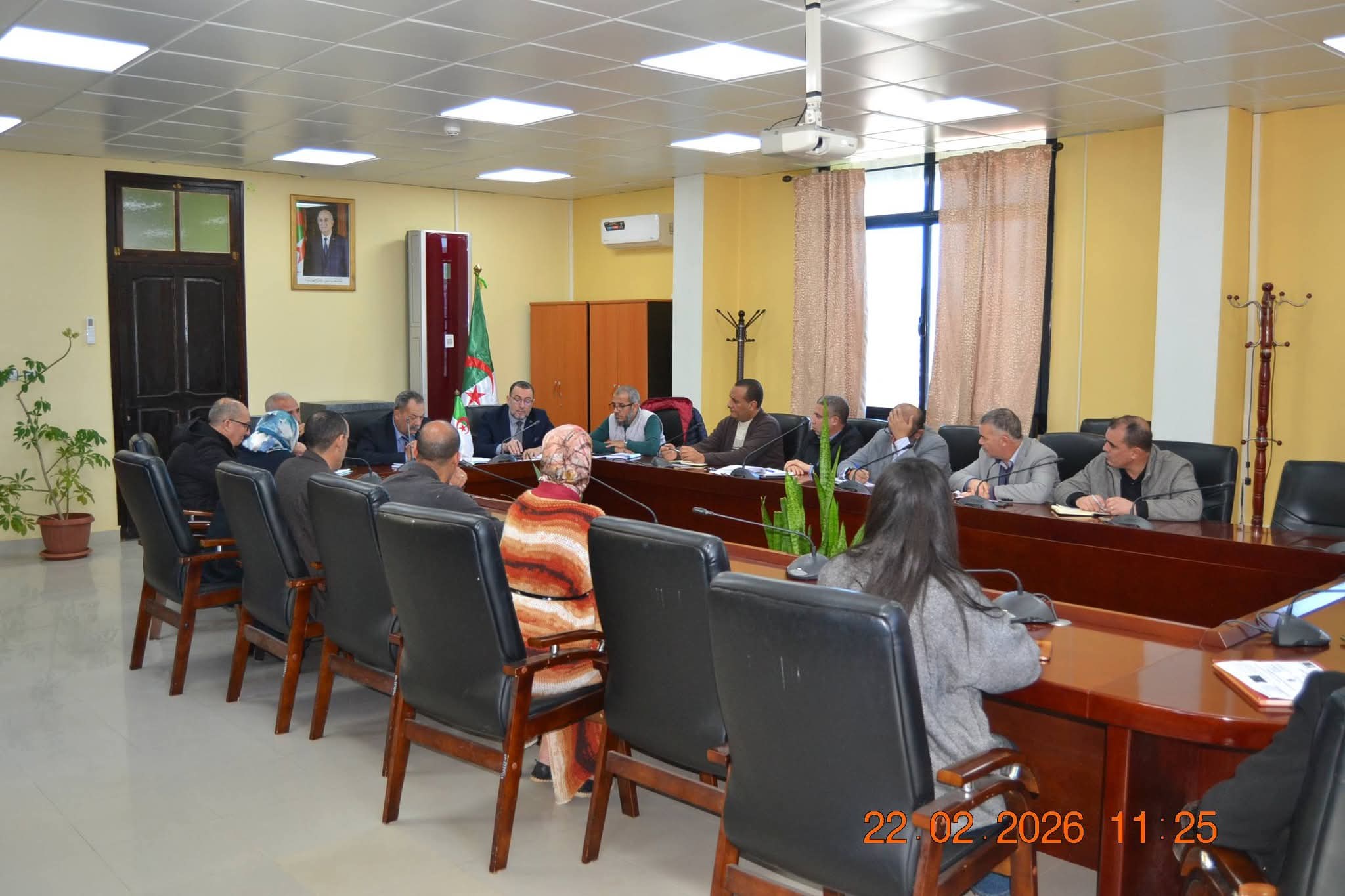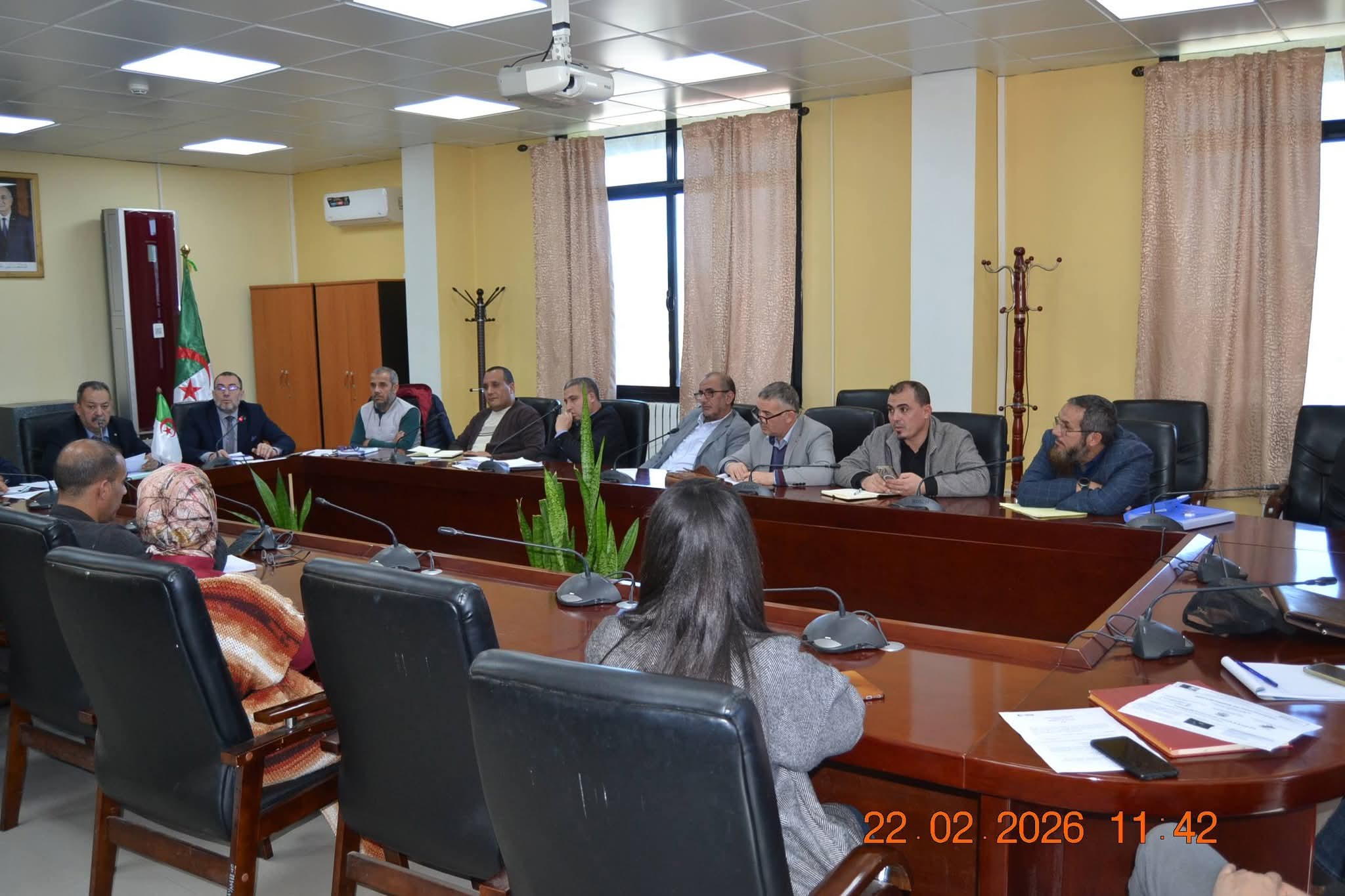 ترأس السيد مدير جامعة 20 أوت 1955 سكيكدة ، البرفيسور بوفندي توفيق صبيحة اليوم الأحد 22 فيفري 2026، اجتماع مجلس الجامعة بقاعة اجتماعات برئاسة الجامعة ، بحضور السادة: المكلف بتسير الأمانة العامة للجامعة ، نواب مدير الجامعة، عمداء الكليات ، مدير معهد العلوم والتقنيات التطبيقية ، مدير معهد البيتروكيمياء ، منسقة ملحقة الطب ، مدير الحاضنة ، مديرة مركز تطوير المقاولاتية و مسؤول مركز أنظمة الشبكات .