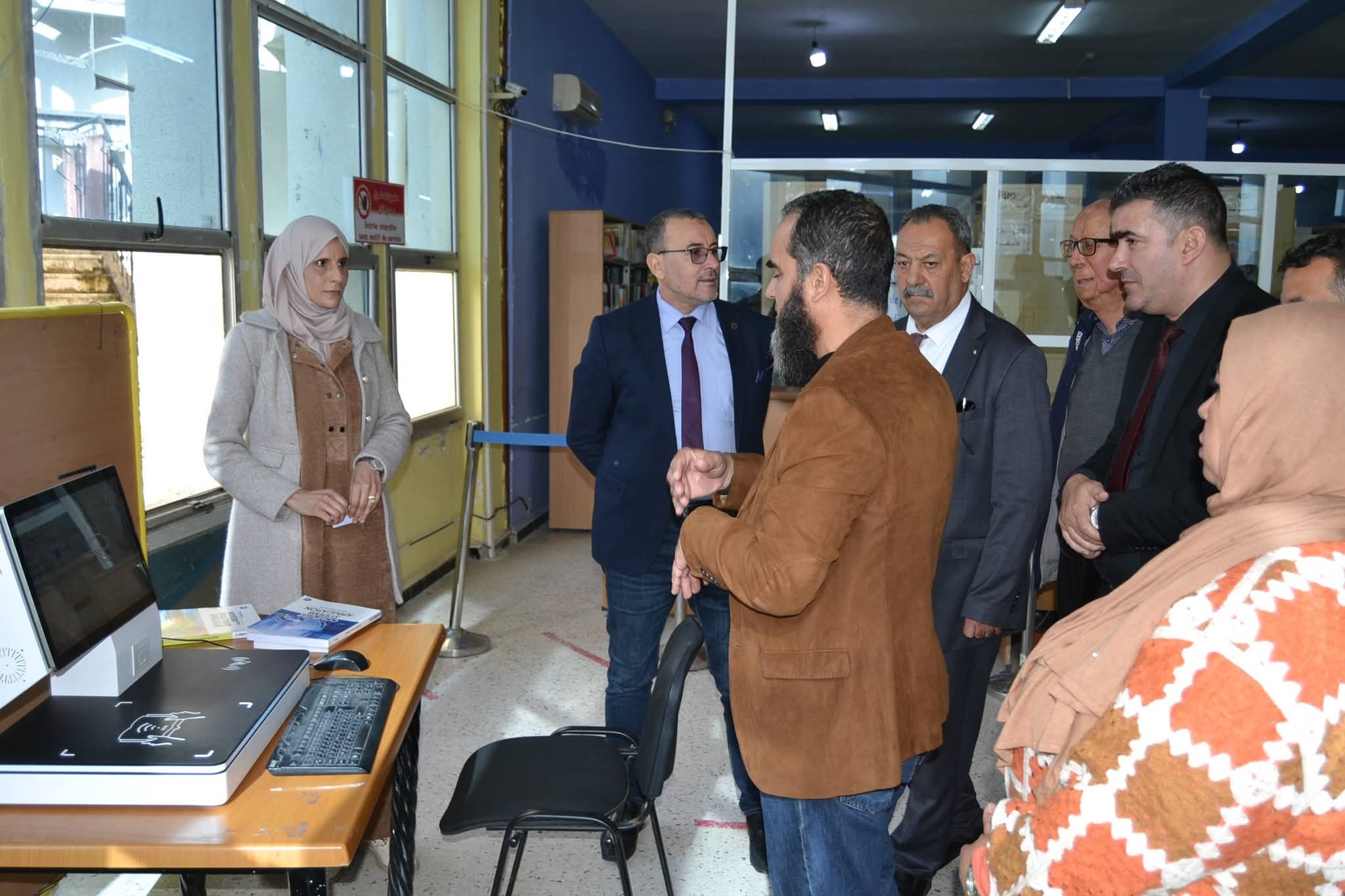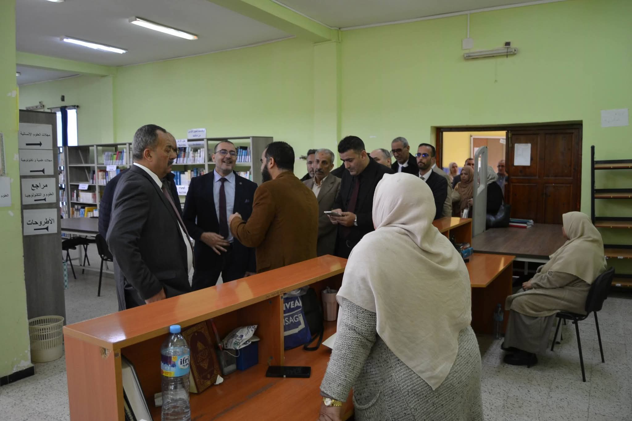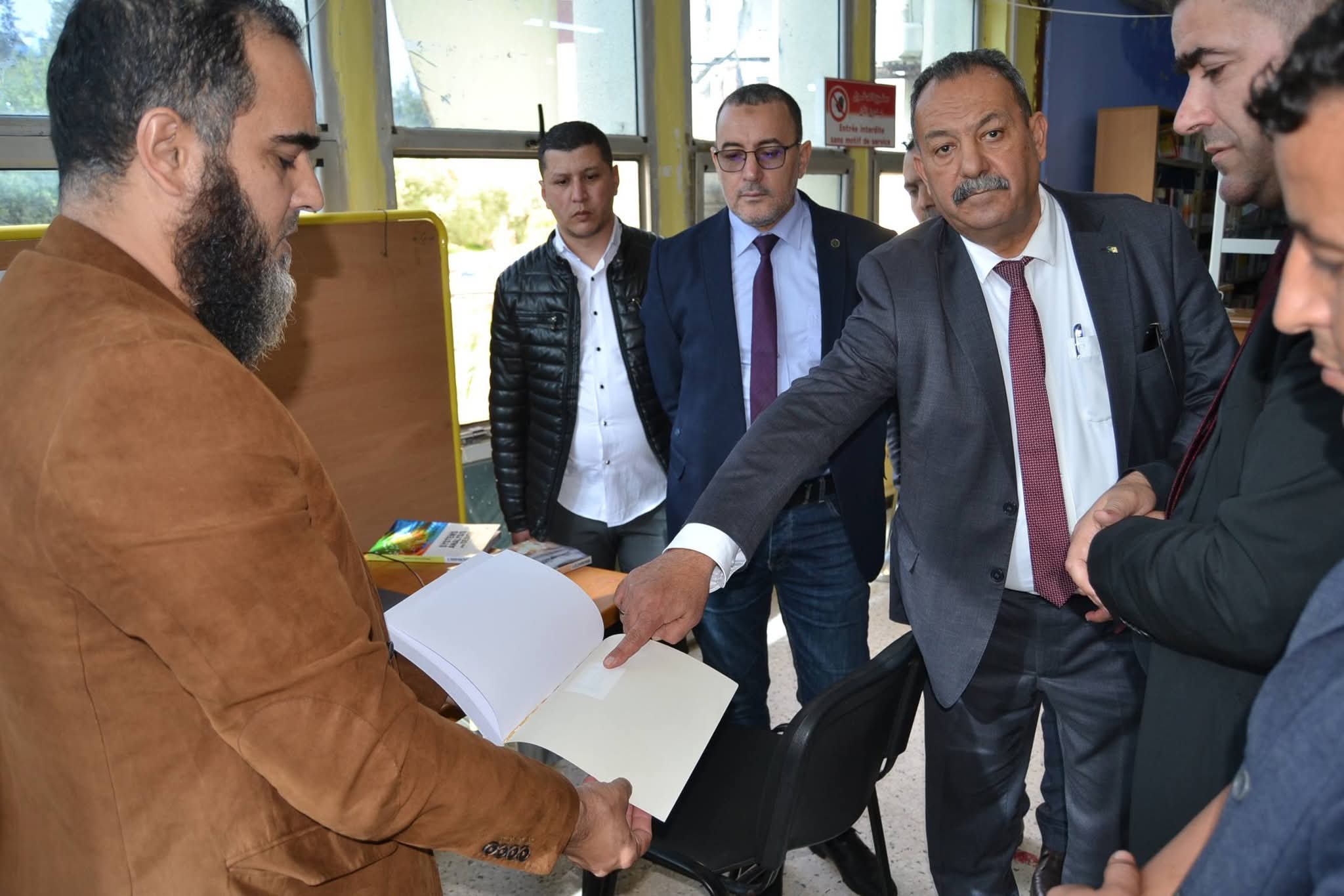 وعقب انتهاء اللقاء، تنقل الوفد رفقة السيد مدير الجامعة وطاقمه الإداري إلى المكتبة المركزية، حيث عاين المدير العام للديوان مختلف مرافقها، وتابع عرضاً ميدانياً لنظام التعريف (RFID) وتطبيق الإعارة الذاتية، وهي التقنيات التي تعكس القفزة النوعية للجامعة في تسيير رصيدها الوثائقي. كما تخللت الزيارة جولة في معرض نُظم بالمناسبة، ضم أهم المقتنيات الجديدة للمكتبة المركزية وأحدث إصدارات الديوان الوطني للمطبوعات الجامعية، ما أتاح فرصة للاطلاع عن قرب على ثراء المحتوى العلمي المتاح.