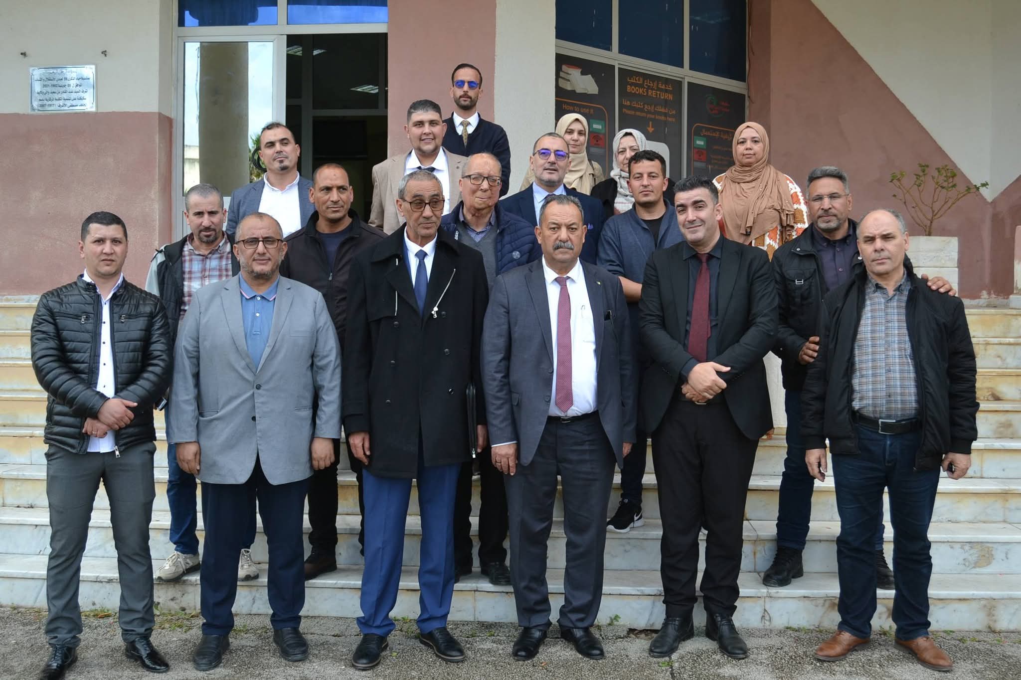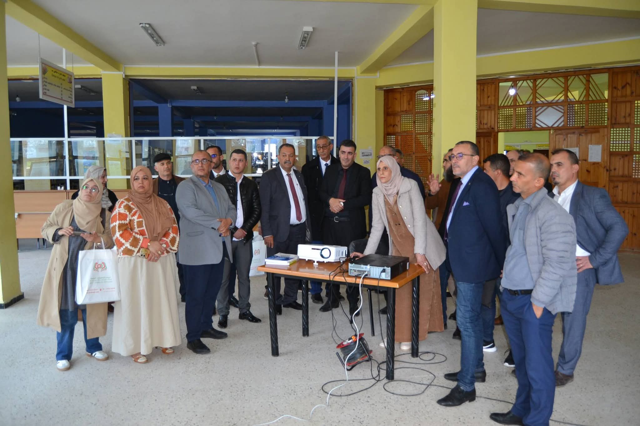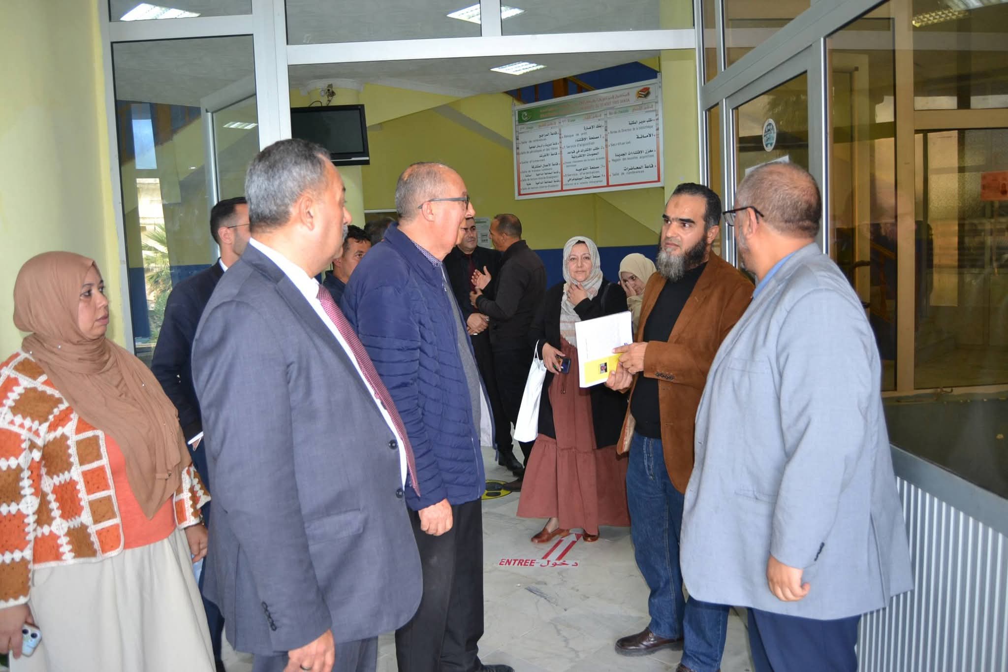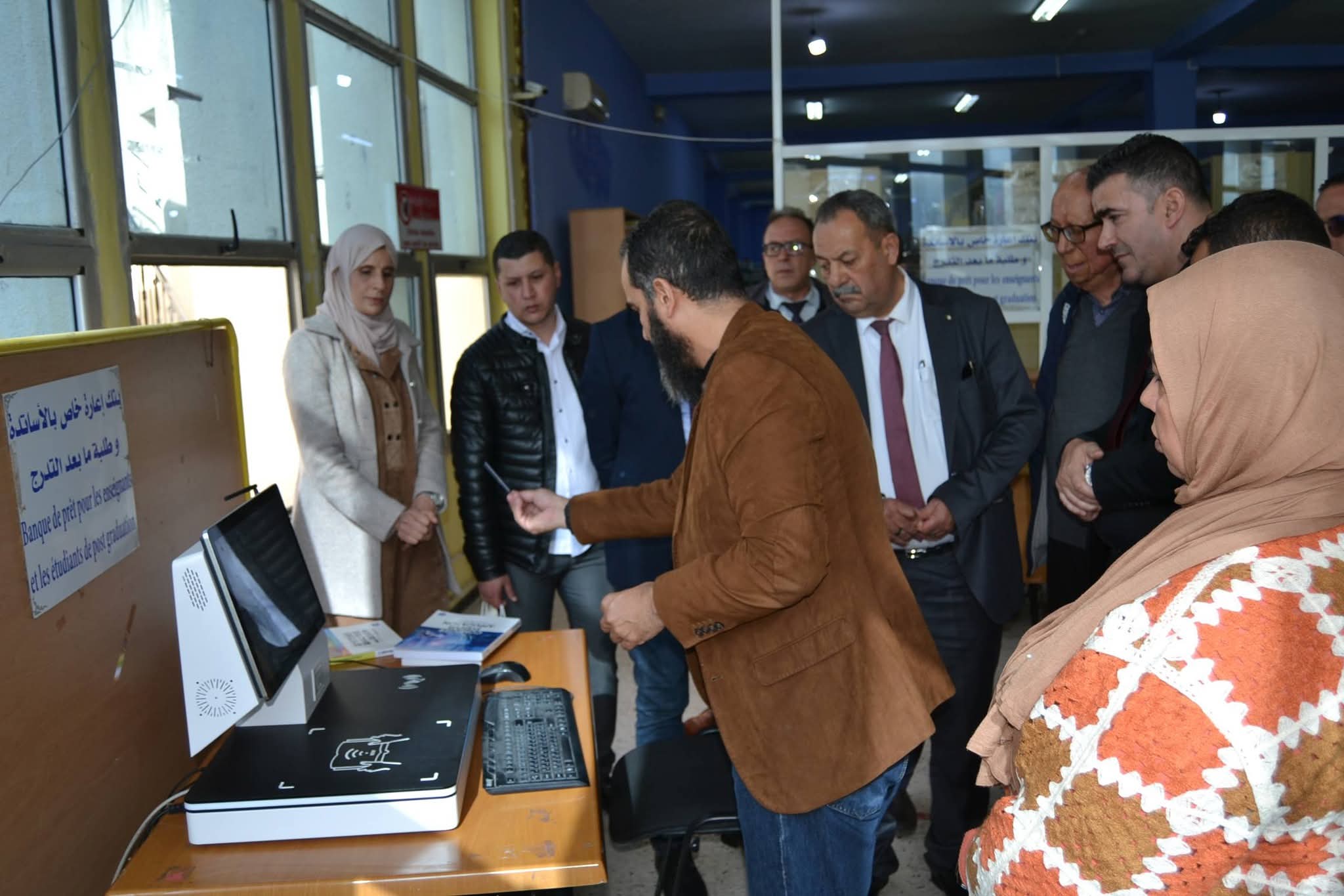 وعقب انتهاء اللقاء، تنقل الوفد رفقة السيد مدير الجامعة وطاقمه الإداري إلى المكتبة المركزية، حيث عاين المدير العام للديوان مختلف مرافقها، وتابع عرضاً ميدانياً لنظام التعريف (RFID) وتطبيق الإعارة الذاتية، وهي التقنيات التي تعكس القفزة النوعية للجامعة في تسيير رصيدها الوثائقي. كما تخللت الزيارة جولة في معرض نُظم بالمناسبة، ضم أهم المقتنيات الجديدة للمكتبة المركزية وأحدث إصدارات الديوان الوطني للمطبوعات الجامعية، ما أتاح فرصة للاطلاع عن قرب على ثراء المحتوى العلمي المتاح.