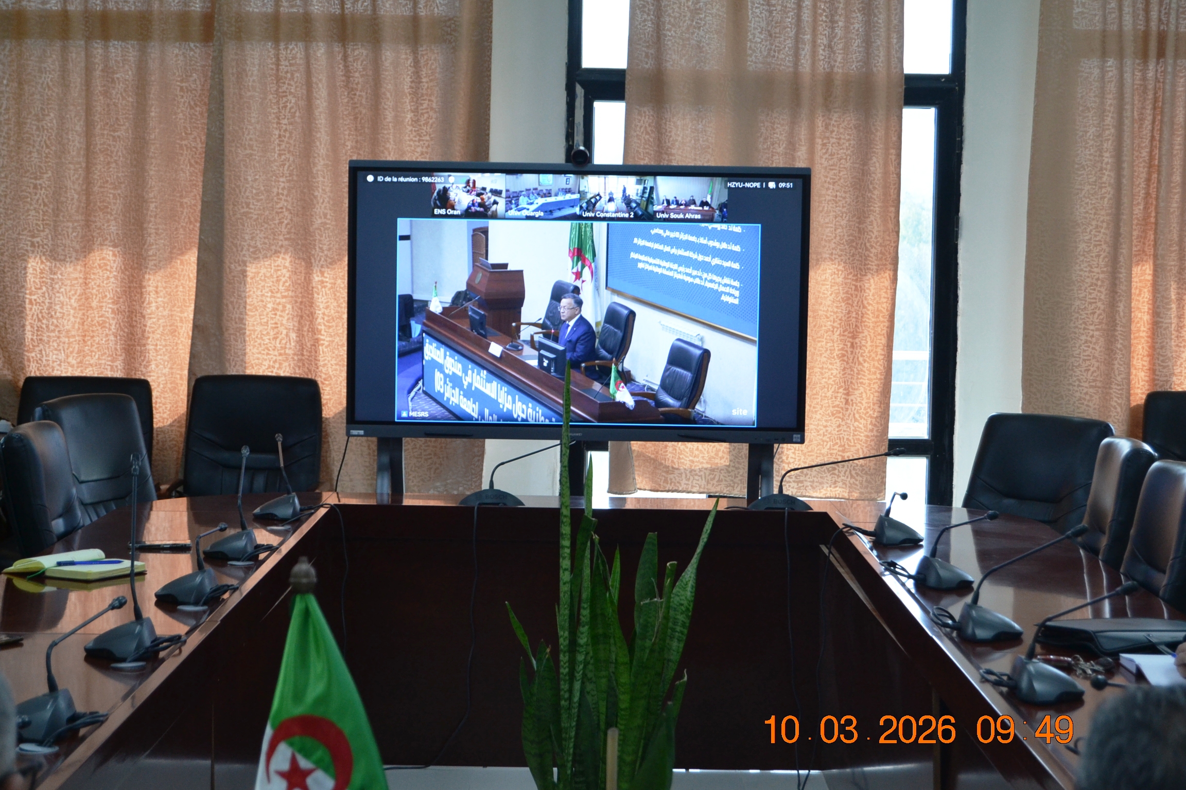شارك السيد مدير جامعة 20 أوت 1955 سكيكدة ، البروفيسور توفيق بوفندي ، يوم الثلاثاء 10 مارس 2026، بقاعة الإجتماعات لرئاسة الجامعة ، عبر تقنية الحاضر عن بعد ، في أشغال الندوة الوطنية حول مزايا الاستثمار في صندوق الصناديق (شركة الاستثمار المالي لجامعة الجزائر 3)، التي أشرف على افتتاحها وزير التعليم العالي والبحث العلمي الاستاذ كمال بداري بقاعة المحاضرات بمقر الوزارة، بحضور رئيس لجنة تنظيم عمليات البورصة ومراقبتها، وبمشاركة مديري المؤسسات الجامعية عبر تقنية التحاضر عن بعد.