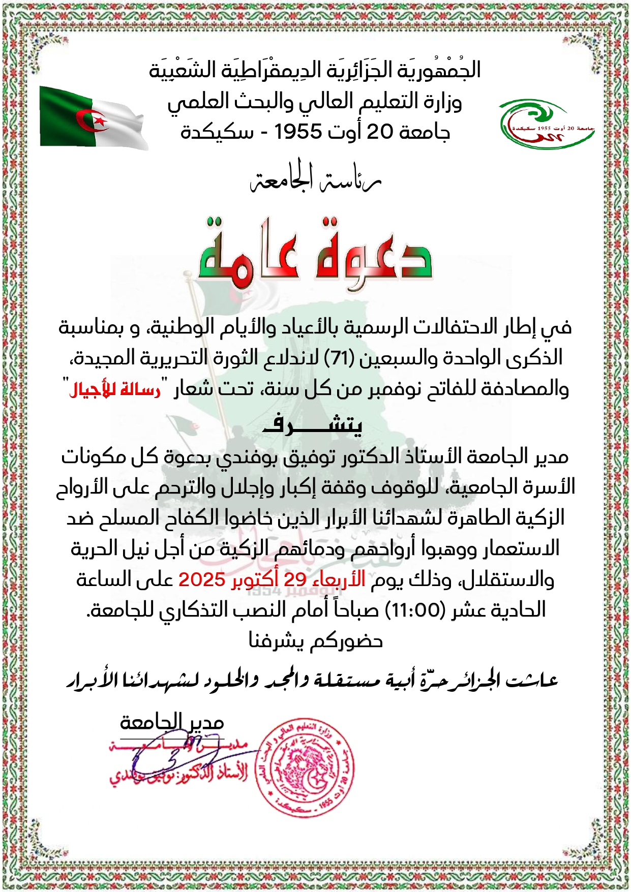 فضاء يضم كل المنشورات و المجلات العلمية لجامعة سكيكدة