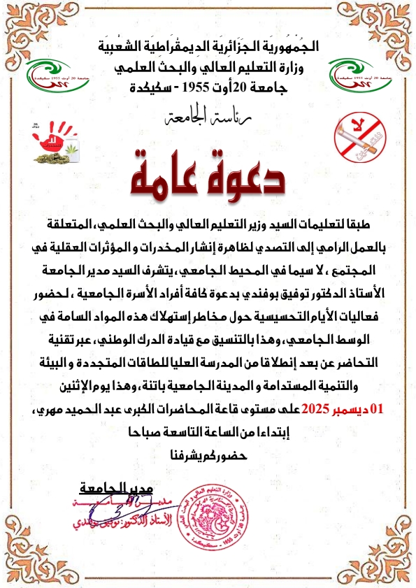 مصلحة مشتركة للبحث العلمي لجامعة سكيكدة