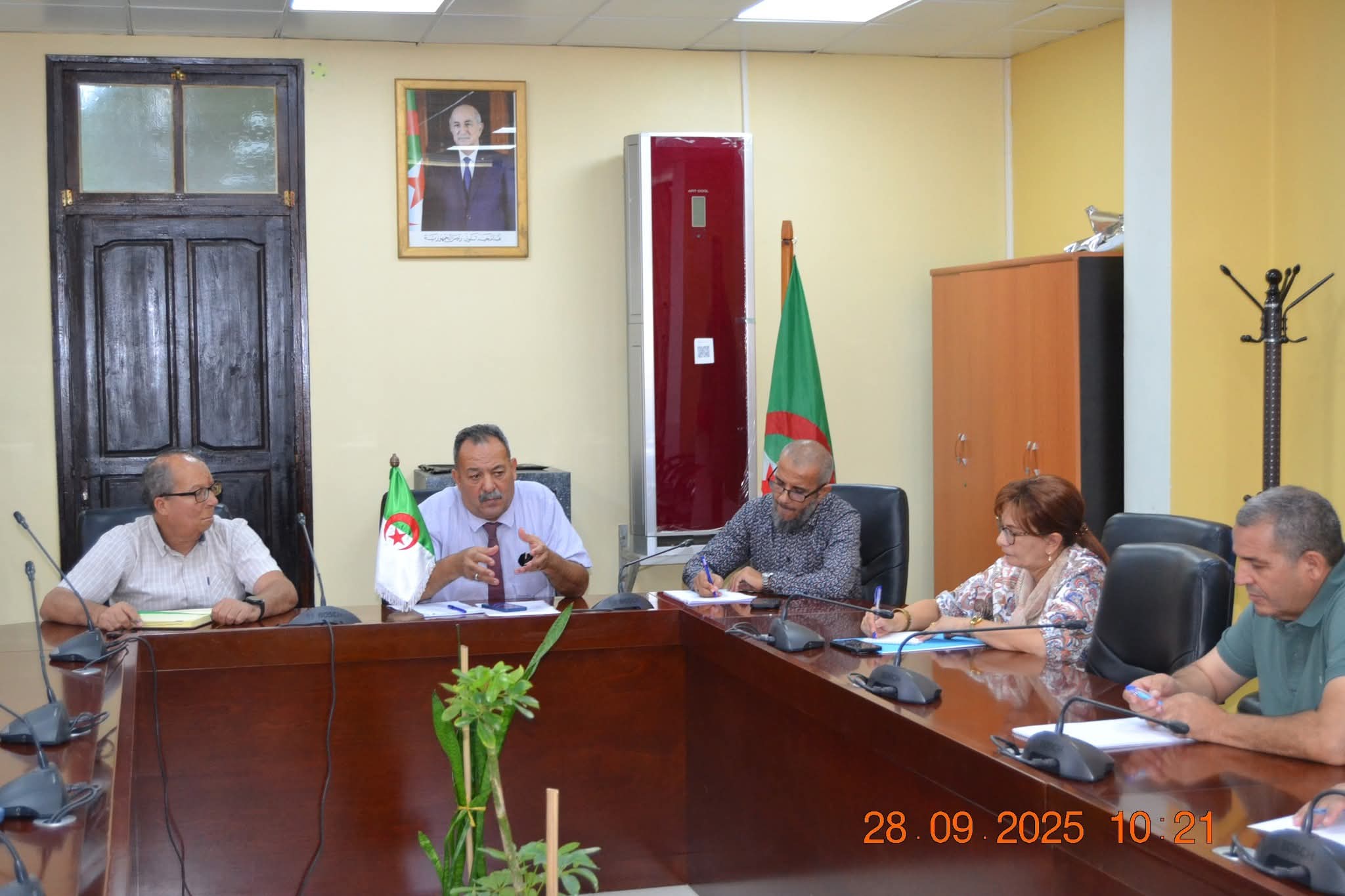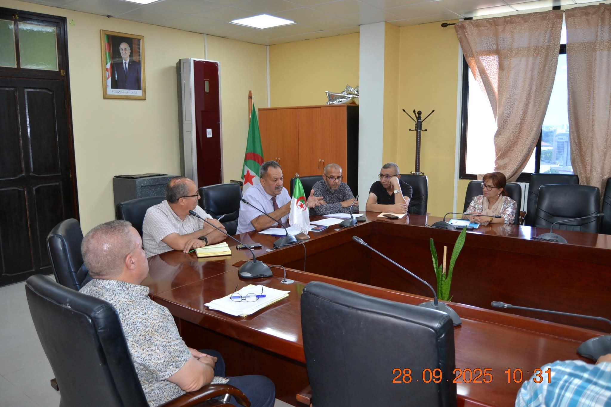عقد صبيحة يوم الأحد 28 سبتمبر 2025 على مستوى قاعة الإجتماعات لرئاسة الجامعة السيد مدير الجامعة البروفيسور بوفندي توفيق إجتماع تنسيقي دوري مع مدراء مخابر البحث لجامعة سكيكدة وبحضور كل من السادة: ، نائب المدير المكلف بالتنمية والإستشراف والتوجيه ، نائب المدير المكلف بما بعد التدرج والطور الثالث ، نائب المدير المكلف بالعلاقات الخارجية و المدير الفرعي للمالية والمحاسبة ، حيث إفتتح اللقاء السيد مدير الجامعة مرحبا بالسادة الأساتذة مدراء المخابر والحضور مثمنا جهودهم في الرقي بالبحث العلمي والتكوين ، ليتم بعدها مناقشة عدة نقاط المدرجة في جدول الأعمال وهي: