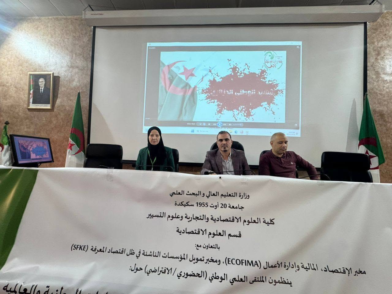 في إطار مختلف الأنشطة العلمية المسطرة من طرف جامعة سكيكدة ، نظمت صباح يوم الأربعاء 05 نوفمبر 2025 بقاعة المحاضرات مجمع مسعود بوقادوم ، كلية العلوم الإقتصادية و التجارية و علوم التسيير قسم العلوم الإقتصادية بالتنسيق مع مخبر تمويل المؤسسات الناشئة في ظل إقتصاد المعرفة و مخبر الإقتصاد ، المالية وإدارة الأعمال ، فعاليات الملتقى الوطني الأول حول التحولات الطاقوية - ديناميكيات جديدة تحدد مسارات الإقتصادات الوطنية و العالمية - بمشاركة أساتذة ومختصين من مختلف جامعات الوطن بمداخلات حضورية وعبر تقنية التحاضر عن بعد ، وقد أشرف على إفتتاح أشغال الملتقى عميد كلية العلوم الإقتصادية و التجارية وعلوم التسيير أ.د كيموش بلال نيابة عن السيد مدير الجامعة البرفيسور بوفندي توفيق رفقة رئيسة الملتقى د. أسماء قرفي .