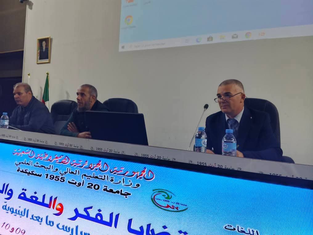 إحتضنت جامعة 20 أوت 1955 سكيكدة صبيحة يوم الأحد 09 نوفمبر 2025 على مستوى قاعة المحاضرات الكبرى عبد الحميد مهري فعاليات الملتقى الدولي الأول حول "قضايا الفكر واللغة و النقد في مدارس مابعد البنيوية والمنظم من طرف كلية الأداب واللغات قسم اللغة والأدب العربي بالتنسيق مع مخبر التراث الأدبي الرسمي والهامشي ، هذا وقد أشرف نائب المدير المكلف بما بعد التدرج والطور الثالث ا.د مزجري اليامين نيابة عن السيد مدير الجامعة البروفيسوربوفندي توفيق على إفتتاح فعاليات الملتقى رفقة كل من : عميد كلية الأداب واللغات ا.د جغدير عبد السلام و رئيس قسم اللغة والأدب العربي أ. عمار مقدم و رئيسة الملتقى ا. شريفة مختيش وبمشاركة أساتذة بمداخلات وورشات من مختلف جامعات الوطن و الجامعات الدولية حضوريا وعبر تقنية التحاضر عن بعد .