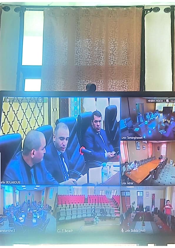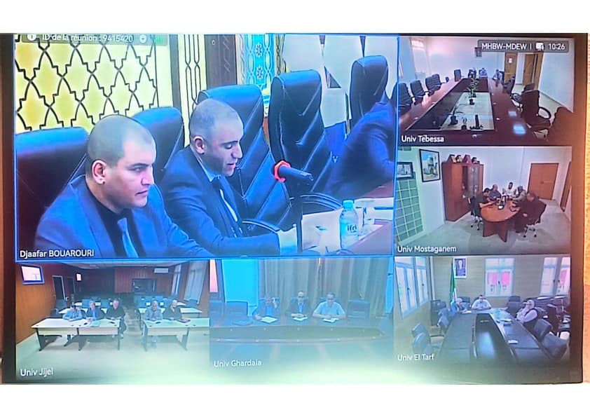 شارك صباح يوم السبت 08 نوفمبر 2025 السيد مدير الجامعة البرفيسور بوفندي توفيق رفقة نائب المدير المكلف بالبيداغوجيا و مسؤول مركز انظمة الشبكات و الإتصال ، عن بعد في الاجتماع الوطني لمتابعة آليات صرف ميزانية مشاريع Protomarket، تنفيذاً لتوجيهات وزير التعليم العالي والبحث العلمي، وبإشراف رئيس الندوة الجهوية لجامعات الوسط، ورئيس اللجنة الوطنية لمتابعة الابتكار وريادة الأعمال، وذلك بحضور رؤساء الندوات الجهوية لجامعات الشرق والغرب.
