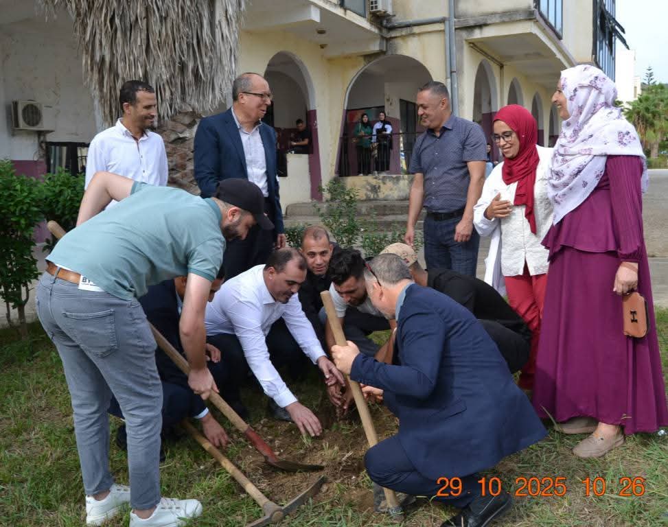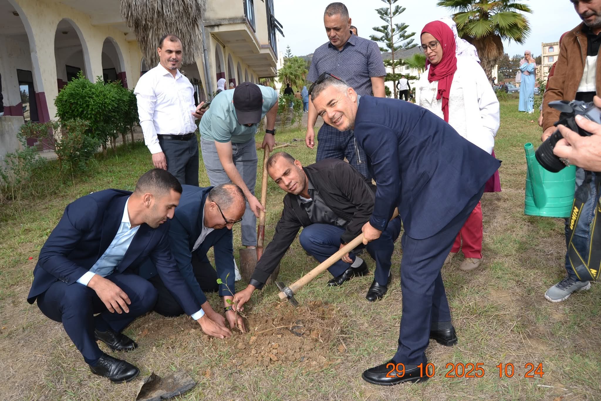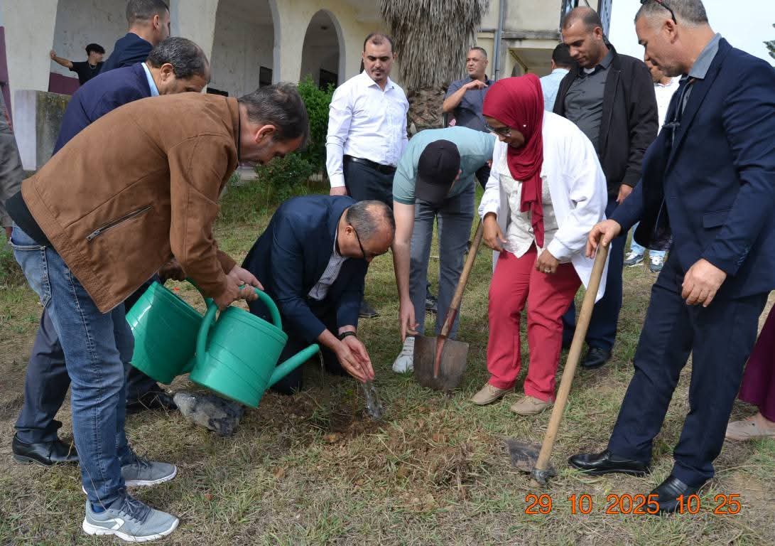 - في إطار البرنامج المسطر للإحتفالات الخاصة بالذكرى الواحدة و السبعون لإندلاع الثورة التحريرية المجيدة على مستوى جامعة 20 أوت 1955 سكيكدة وبشعار "رسالة للأجيال"، وتنفيدا لتوصيات الوزارة الوصية فيما يخص برنامج مواصلة حملات التشجير على مستوى الجامعات بداية من شهر أكتوبر 2025 إلى غاية 31 مارس 2026 و تحت إشراف السيد مدير الجامعة البرفيسور توفيق بوفندي ، نظمت صبيحة اليوم الأربعاء 29 أكتوبر 2025 المديرية الفرعية للأنشطة العلمية والثقافية والرياضية بالتنسيق مع المصلحة المشتركة قطب التعميم النباتي للجامعة و كلية الأداب و اللغات حملة تشجير على مستوى المساحات الخضراء للكلية بحضور نائب المدير المكلف بالتنمية والإستشراف، ممثل عن المجلس الأعلى الشباب ، عمداء الكليات، المدير الفرعي للأنشطة العلمية والثقافية والرياضة المدير الفرعي للوسائل والصيانة ، مسؤولة قطب التعميم النباتي، الطاقم الإداري للكلية و بمشاركة الأستاذة ، الطلبة و الموظفين وممثلي التنظيمات الطلابية و النوادي العلمية .