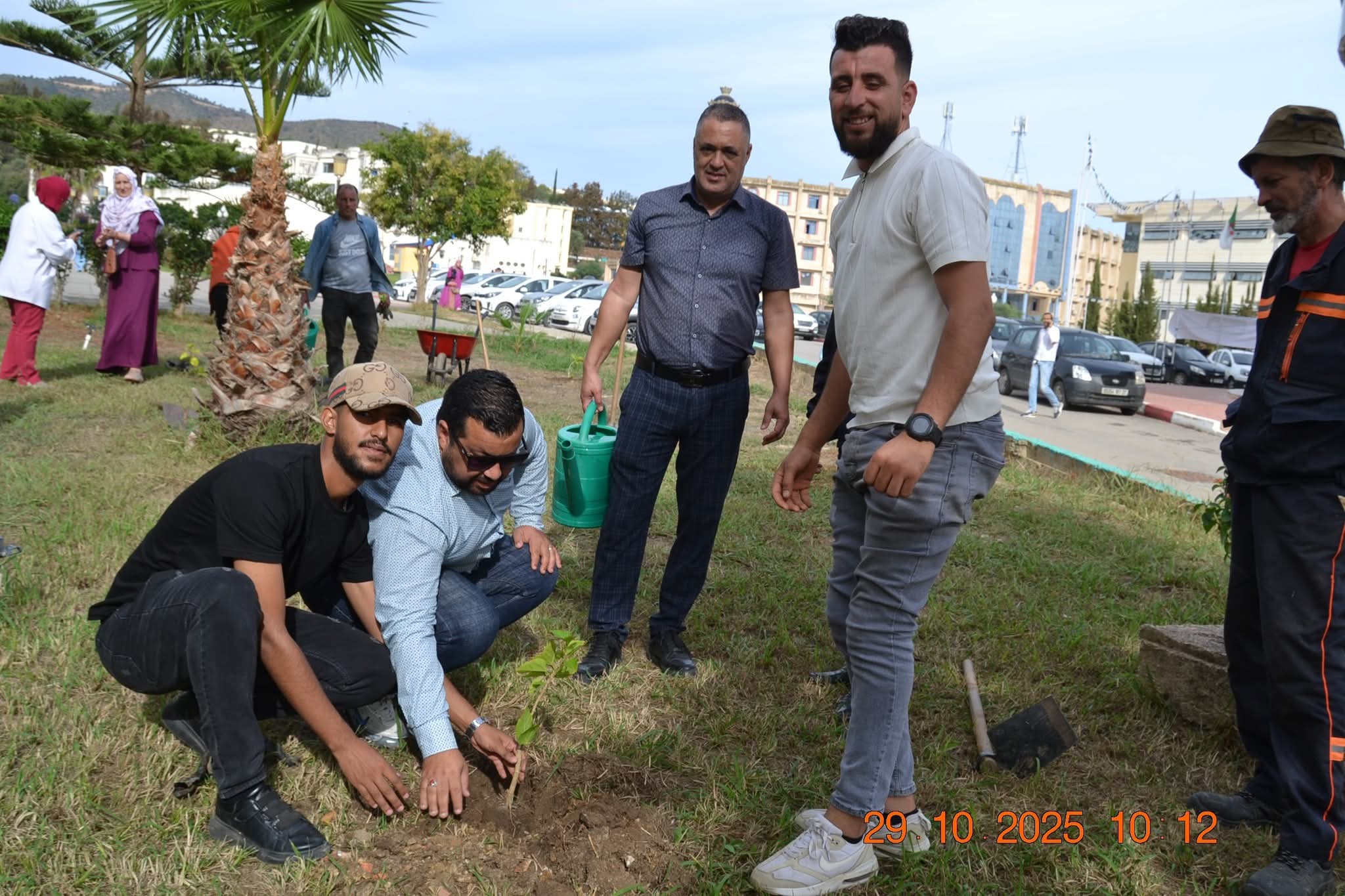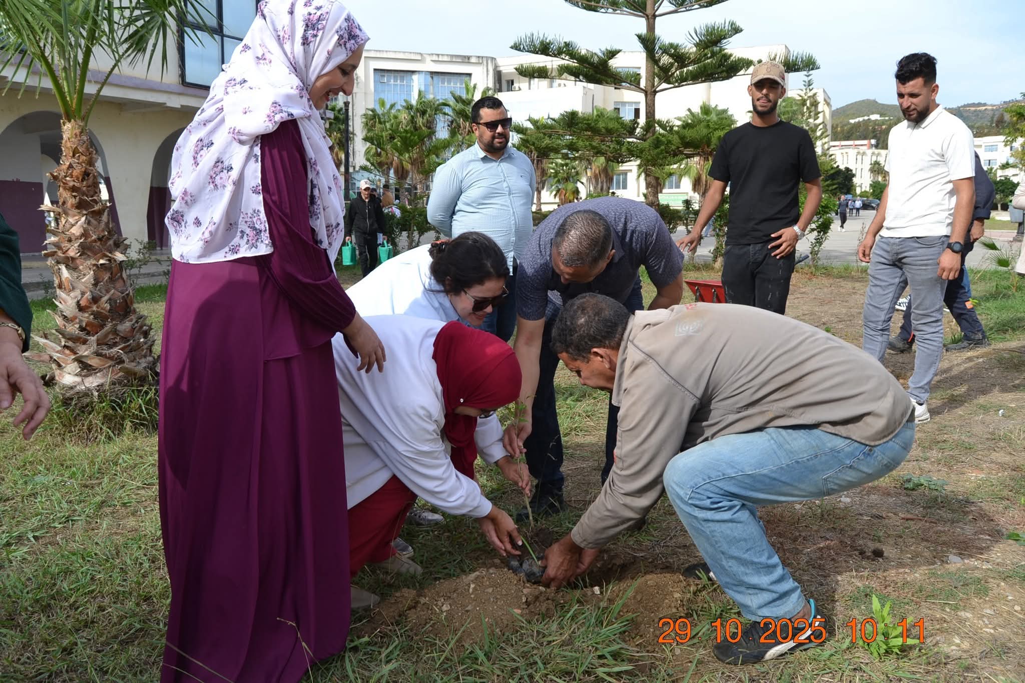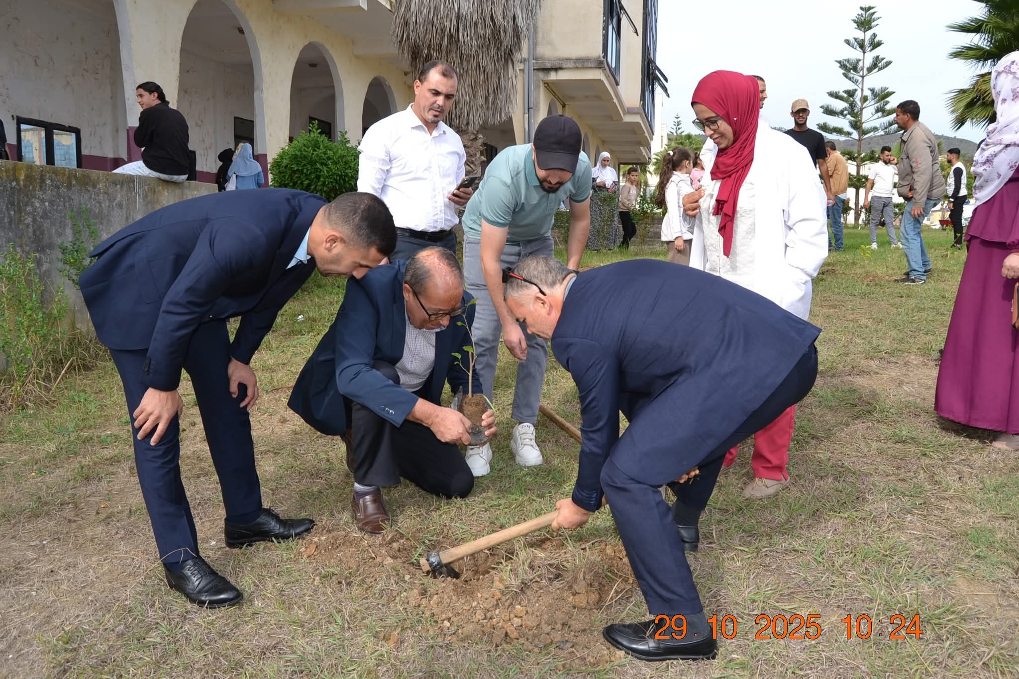 - في إطار البرنامج المسطر للإحتفالات الخاصة بالذكرى الواحدة و السبعون لإندلاع الثورة التحريرية المجيدة على مستوى جامعة 20 أوت 1955 سكيكدة وبشعار "رسالة للأجيال"، وتنفيدا لتوصيات الوزارة الوصية فيما يخص برنامج مواصلة حملات التشجير على مستوى الجامعات بداية من شهر أكتوبر 2025 إلى غاية 31 مارس 2026 و تحت إشراف السيد مدير الجامعة البرفيسور توفيق بوفندي ، نظمت صبيحة اليوم الأربعاء 29 أكتوبر 2025 المديرية الفرعية للأنشطة العلمية والثقافية والرياضية بالتنسيق مع المصلحة المشتركة قطب التعميم النباتي للجامعة و كلية الأداب و اللغات حملة تشجير على مستوى المساحات الخضراء للكلية بحضور نائب المدير المكلف بالتنمية والإستشراف، ممثل عن المجلس الأعلى الشباب ، عمداء الكليات، المدير الفرعي للأنشطة العلمية والثقافية والرياضة المدير الفرعي للوسائل والصيانة ، مسؤولة قطب التعميم النباتي، الطاقم الإداري للكلية و بمشاركة الأستاذة ، الطلبة و الموظفين وممثلي التنظيمات الطلابية و النوادي العلمية .