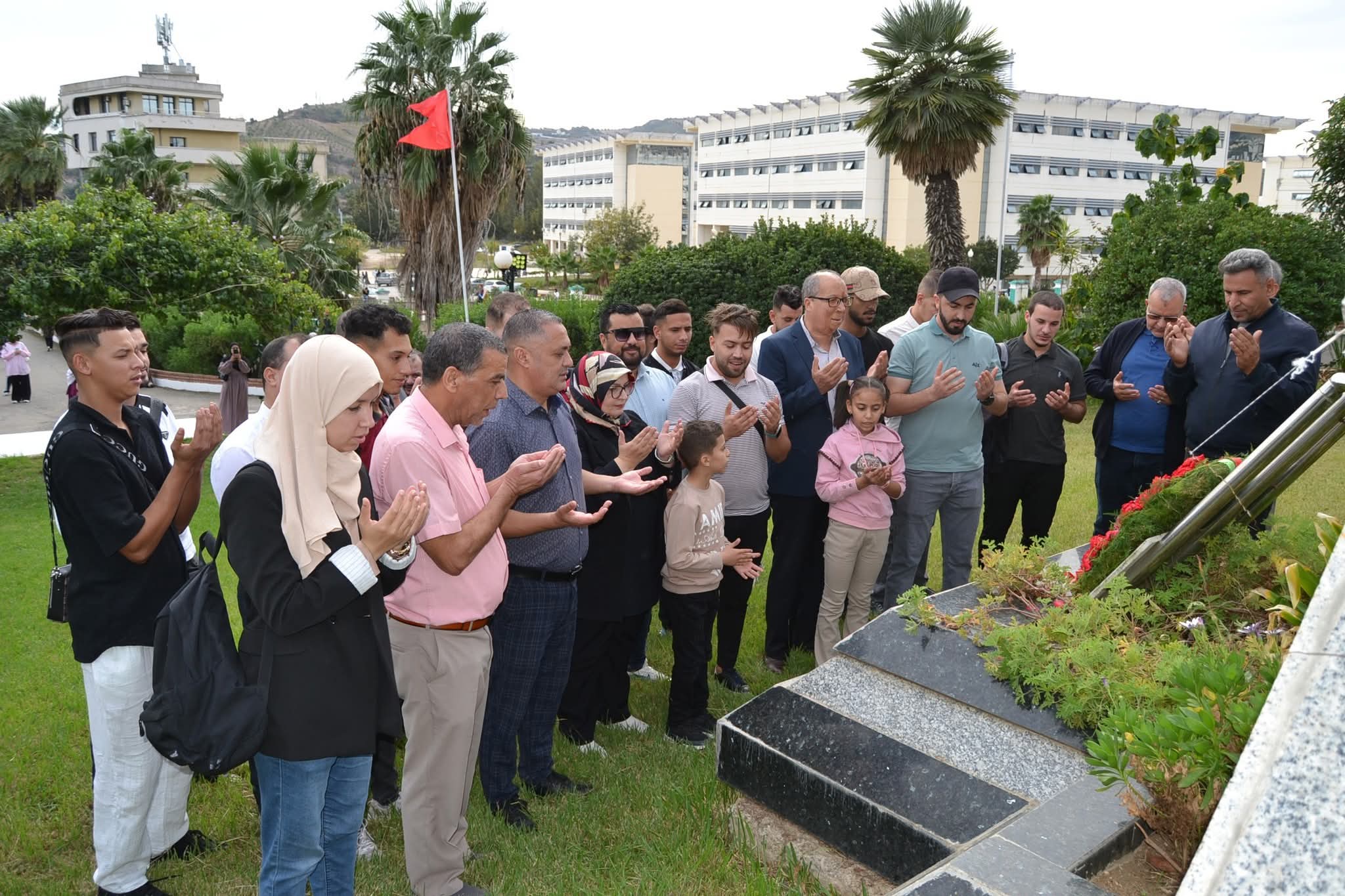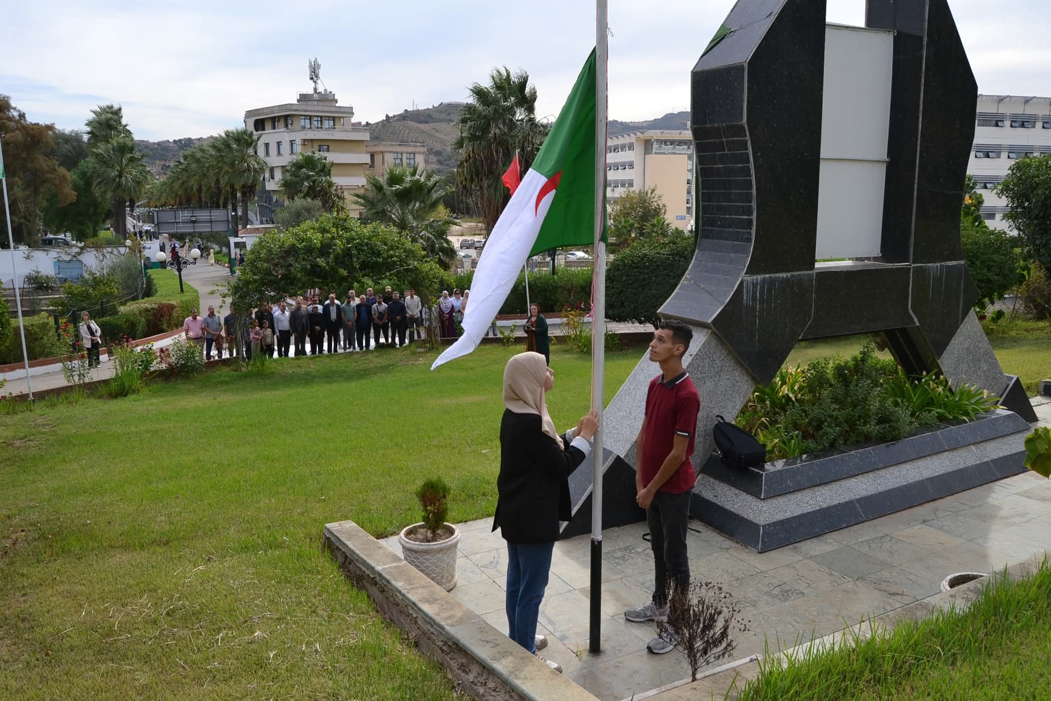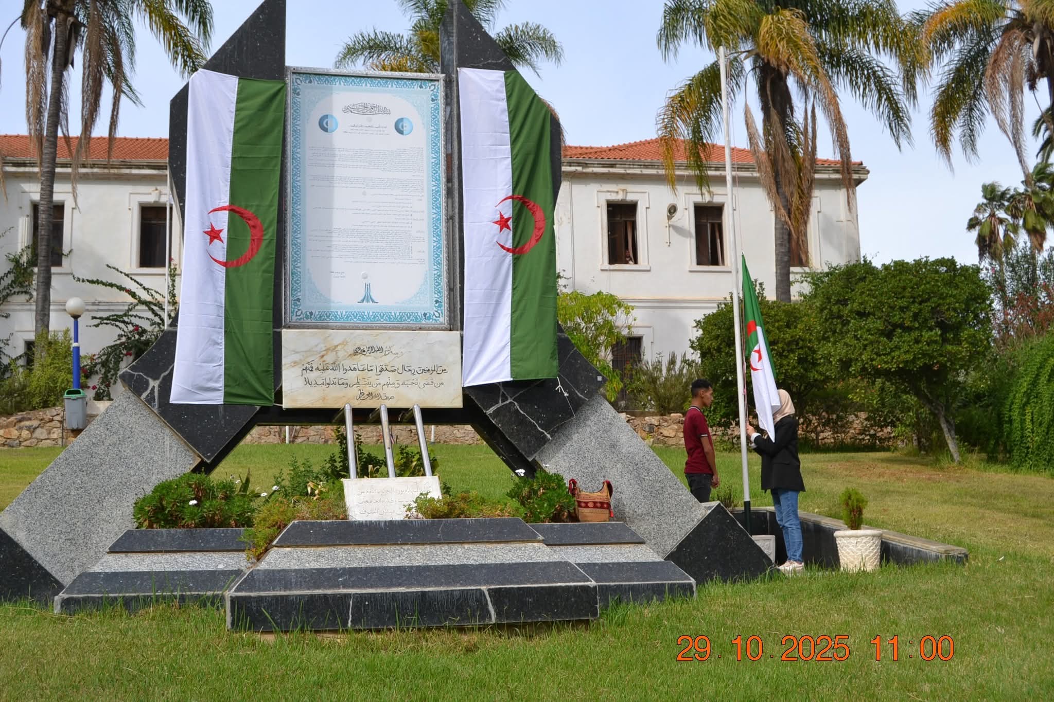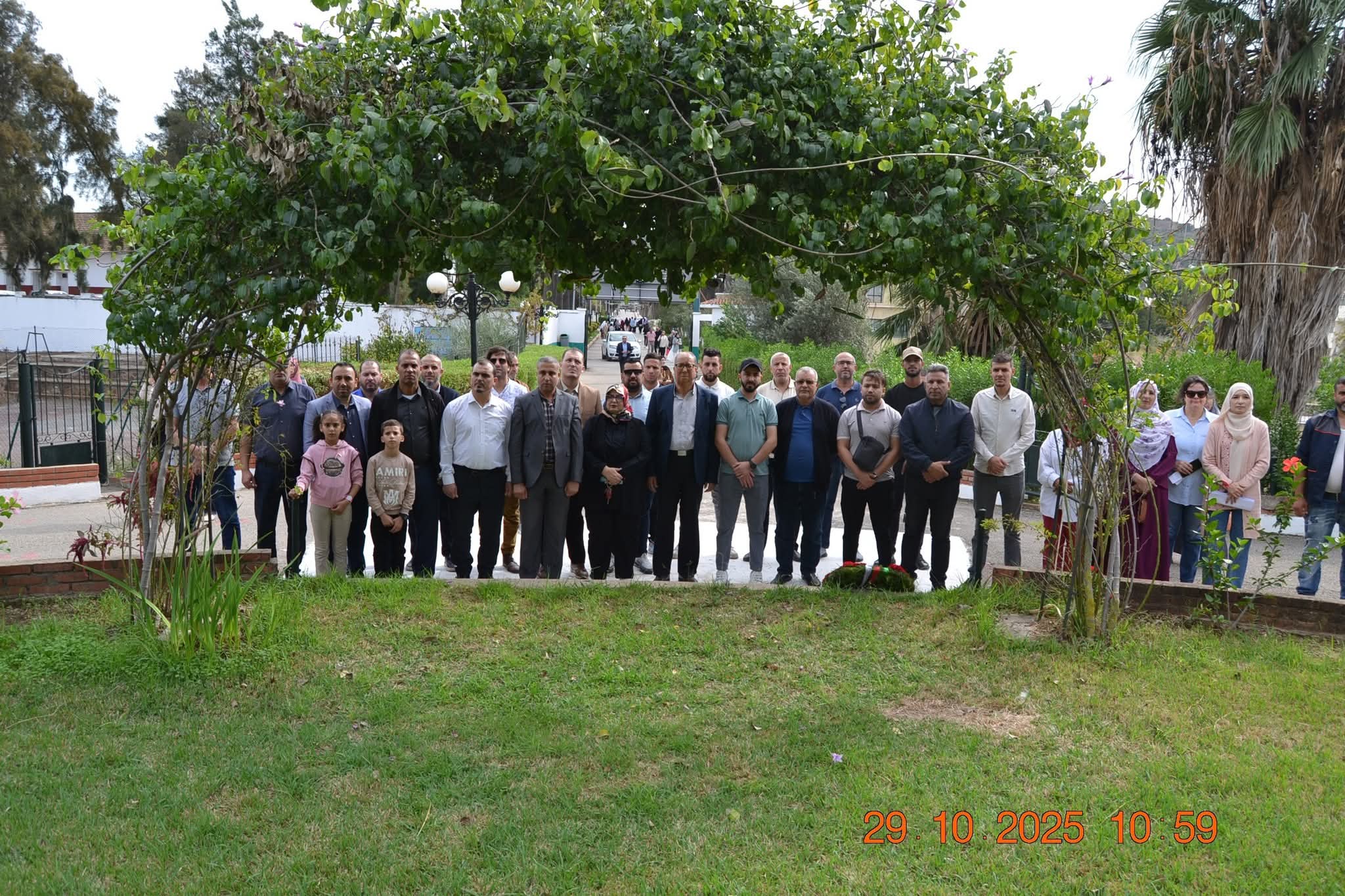 أشرف صبيحة يوم الأربعاء 29 أكتوبر 2025 على الساعة 11:00صباحا السيد نائب مدير الجامعة المكلف بالتنمية و الإستشراف و التوجيه الدكتور خالد بوجلال نيابة عن السيد مدير الجامعة البرفيسور بوفندي توفيق وبحضور الطاقم الإداري للجامعة ،ممثلي عن النقابات والتنظيمات الطلابية و النوادي العلمية ، المعتمدة بالجامعة ، الأساتذة و الموظفين على الوقوف و الإستماع تحية للنشيد الوطني الجزائري و الترحم على أرواح شهدائنا الأبرار بقراءة الفاتحة ووضع إكليل من الزهور على النصب التذكاري للجامعة وهذا بمناسبة الذكرى الواحدة والسبعون لإندلاع الثورة التحريرية المجيدة أول نوفمبر 1954-2025 تحت شعار "رسالة للأجيال"